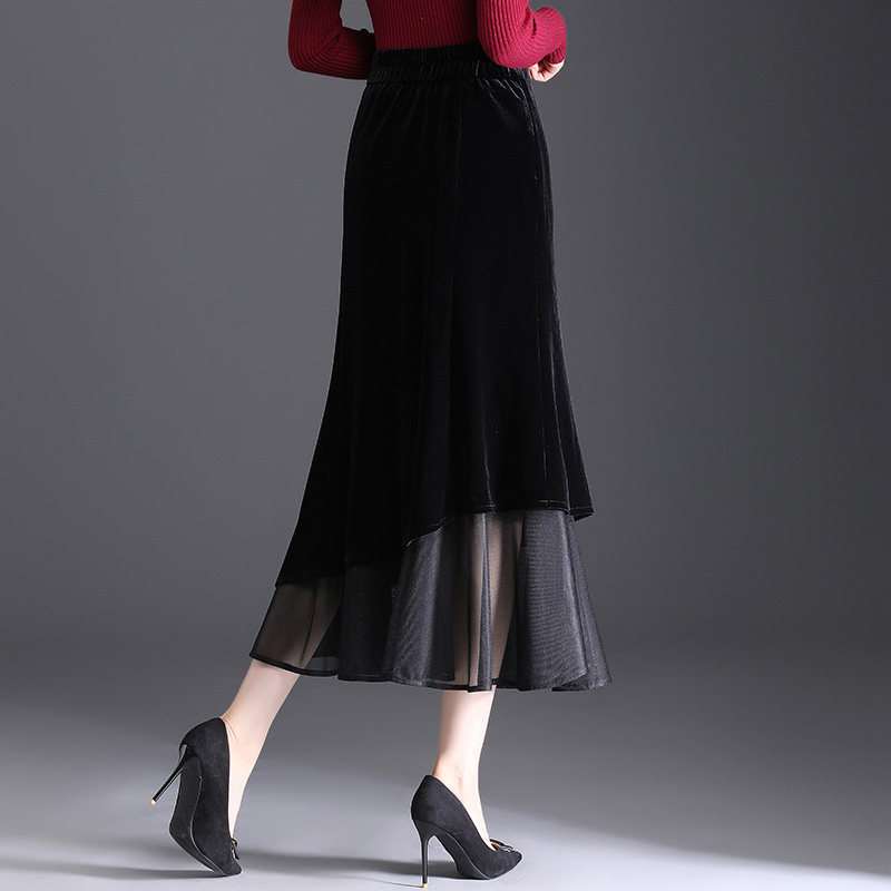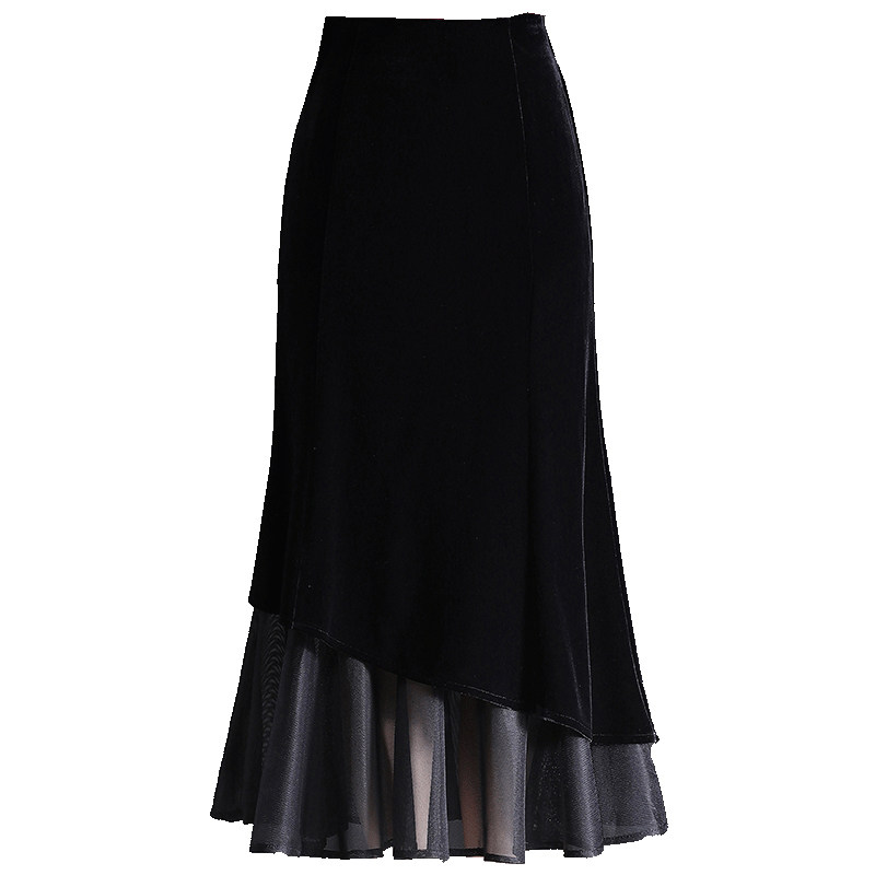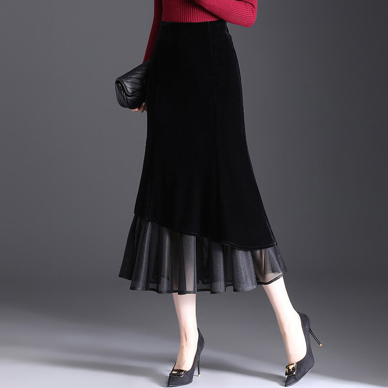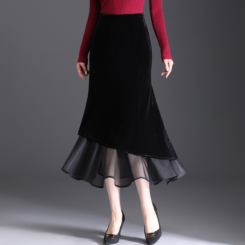 网纱拼接鱼尾裙半身裙女2026年春季新款中长款高腰显瘦包臀裙子