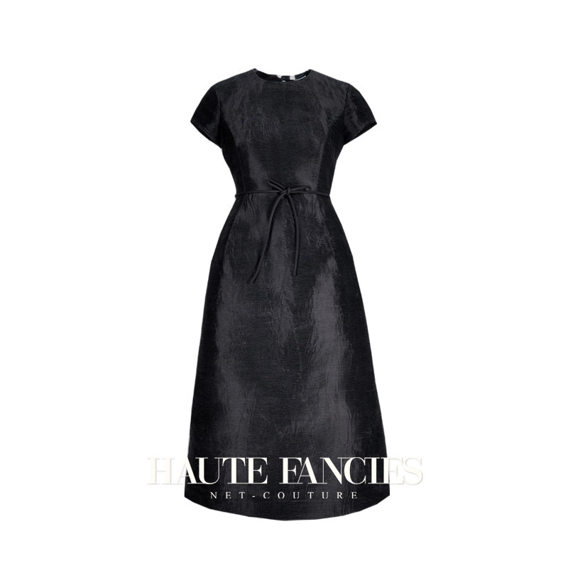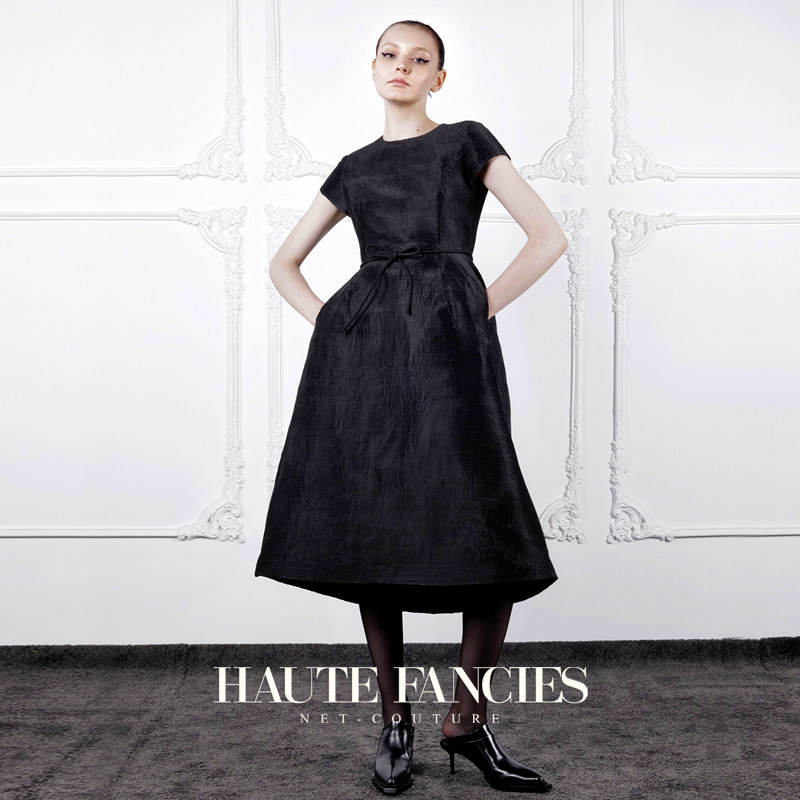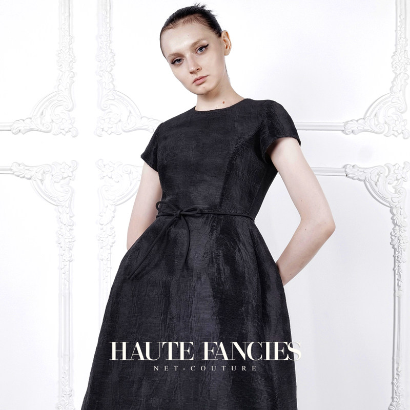 小黑裙 HAUTE FANCIES后构想 | 黑色高密褶圆领收腰连衣裙25早秋