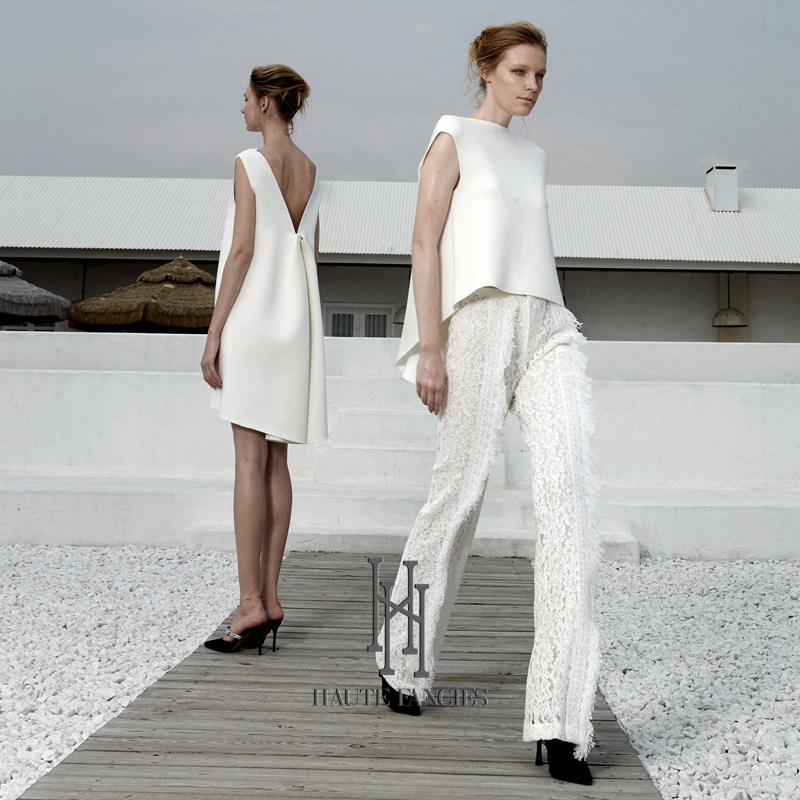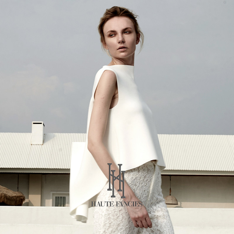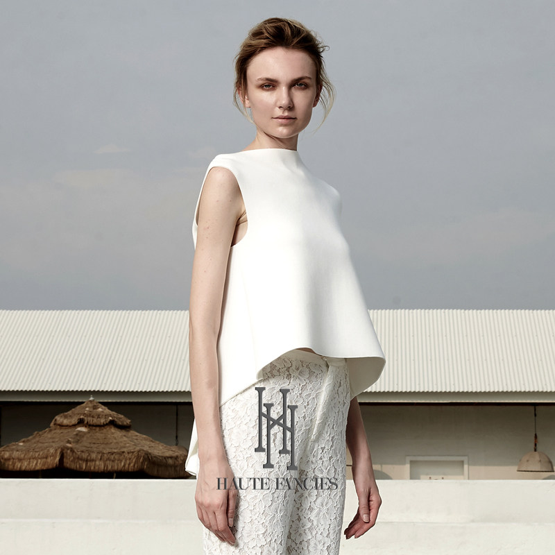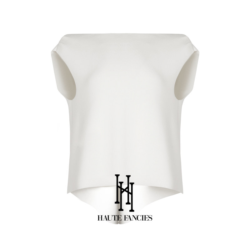 蝴蝶背 HAUTE FANCIES后构想|白色空气层法式优雅一字领露背上衣