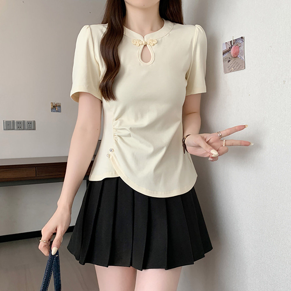 大码新中式国风红色正肩短袖T恤女2025夏季新款微胖mm不规则上衣