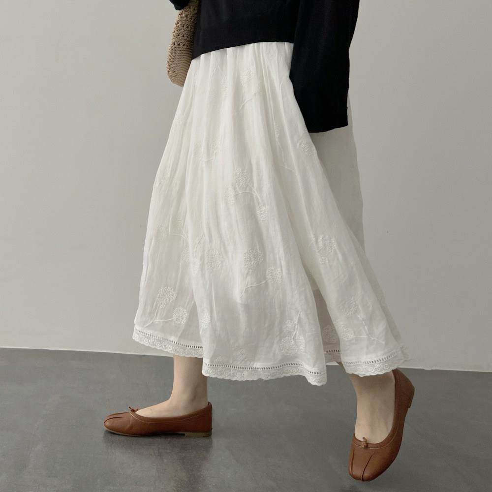 法国Rixo Rane法式轻奢?文艺超仙刺绣白色A字半身裙显瘦气质长裙