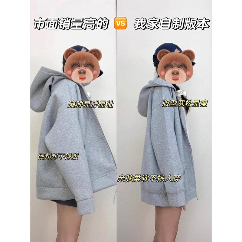 灰色连帽运动衫外套女2025新款韩系冬季冬天秋冬冬装女款秋季穿搭