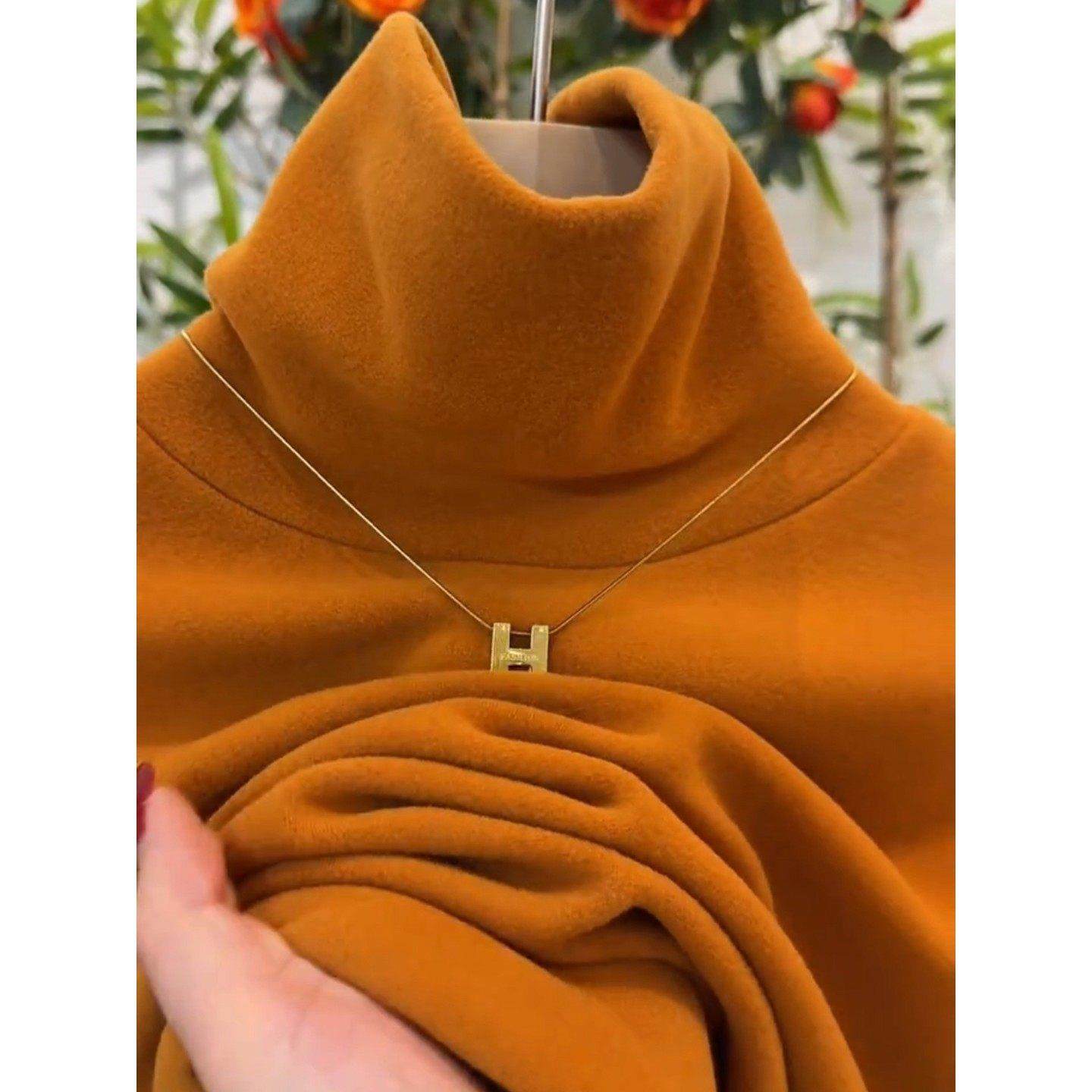 高级感双面澳绒堆堆领打底衫女秋冬时尚百搭内搭加绒保暖高领上衣