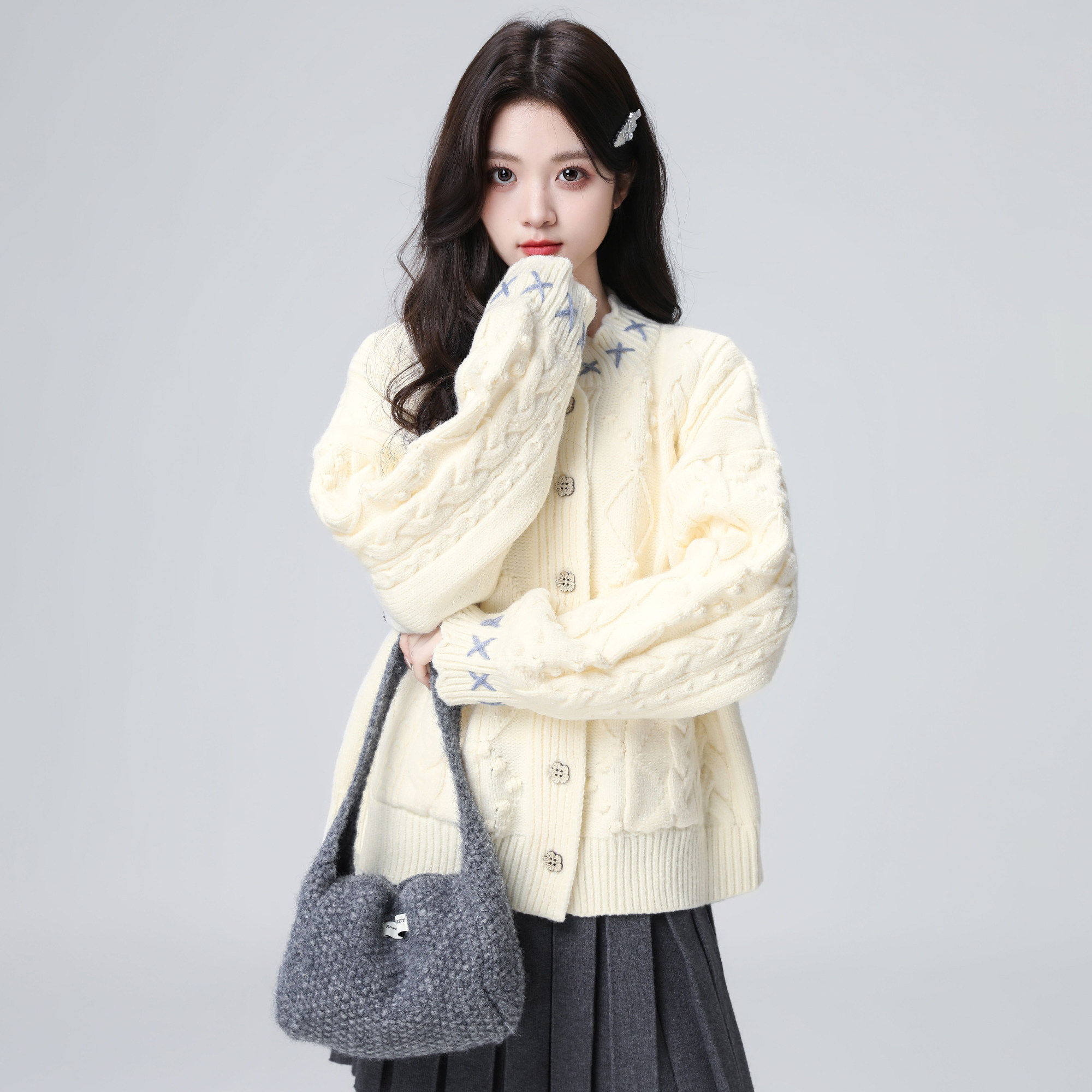 圆领麻花毛衣外套女秋冬2025冬新款宽松慵懒加厚针织开衫外穿上衣