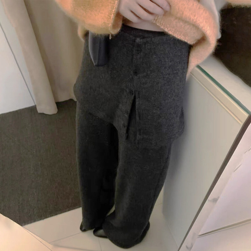 首页> 女装> 小个子150灰色两件套微喇裤女冬季加绒加厚屁帘裤宽松休闲喇叭裤