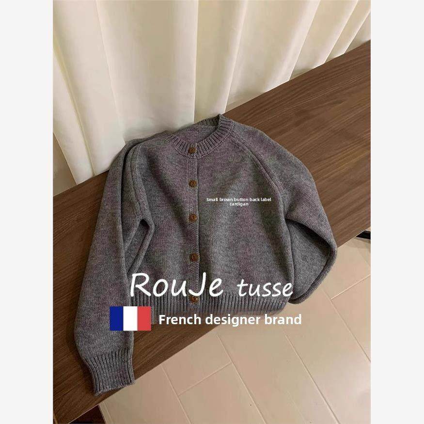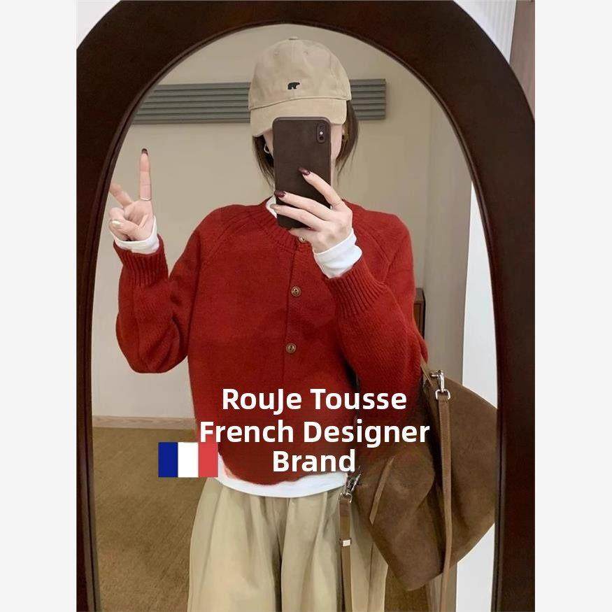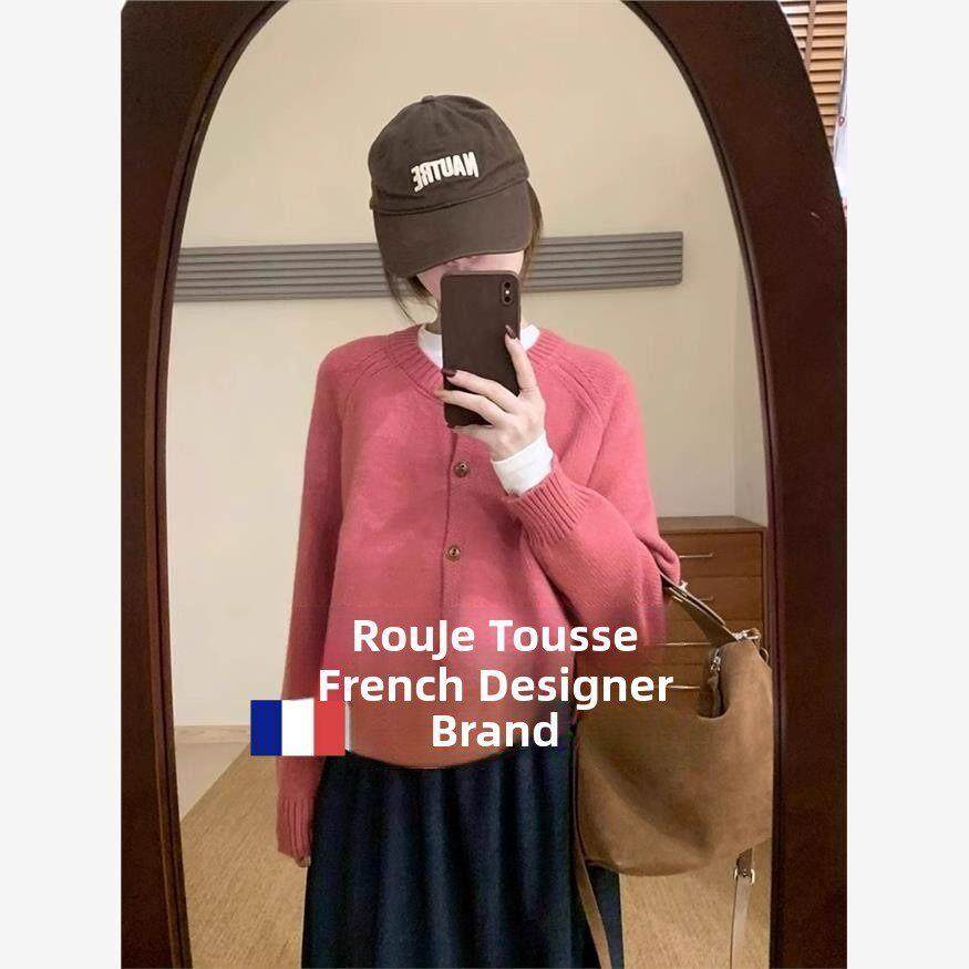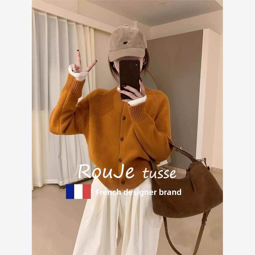 Rouje tusse圆领羊绒针织开衫女2025春季高级感毛衣外套羊毛上衣