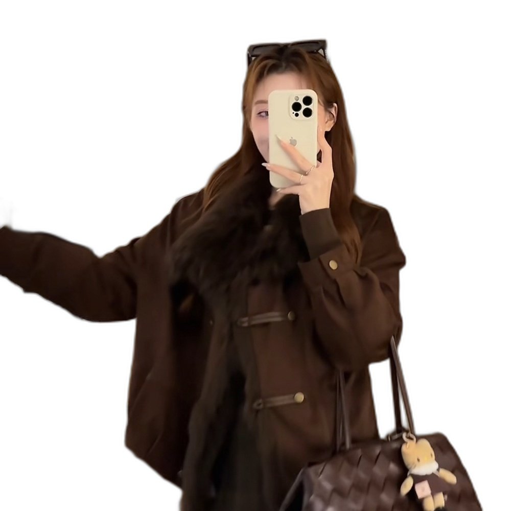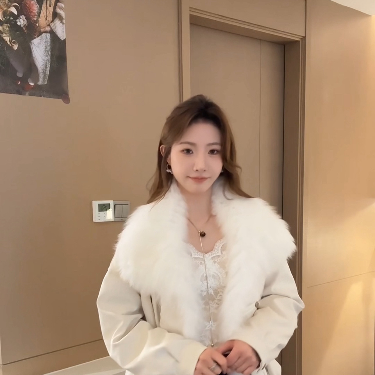 年轻款皮草工艺麂皮绒拼接真狐狸毛加厚保暖羽绒服外套