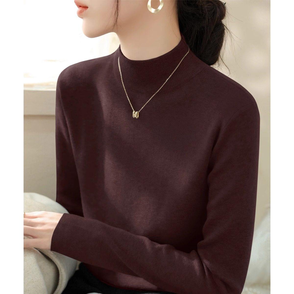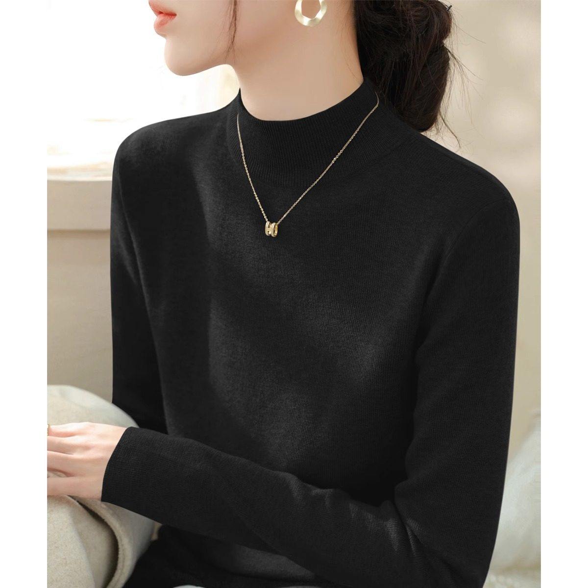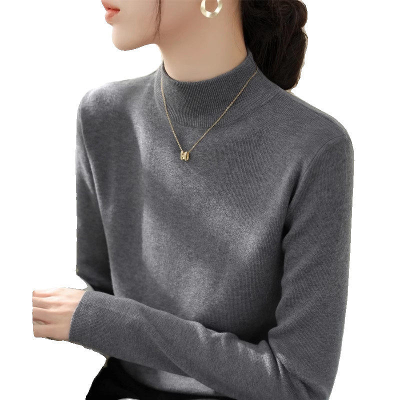 半高领打底衫女秋季2025新款超火小香风内搭高级感灰色针织衫上衣