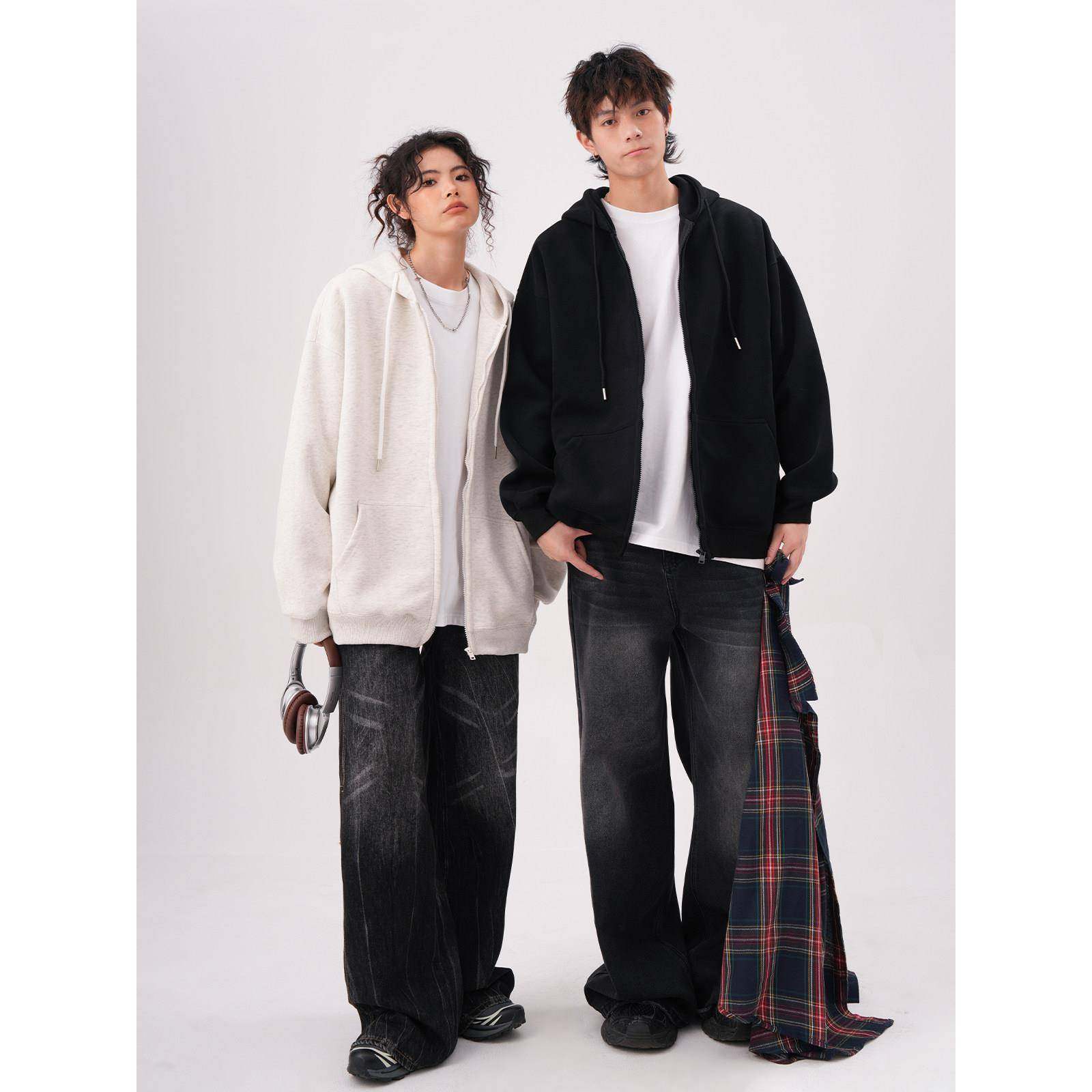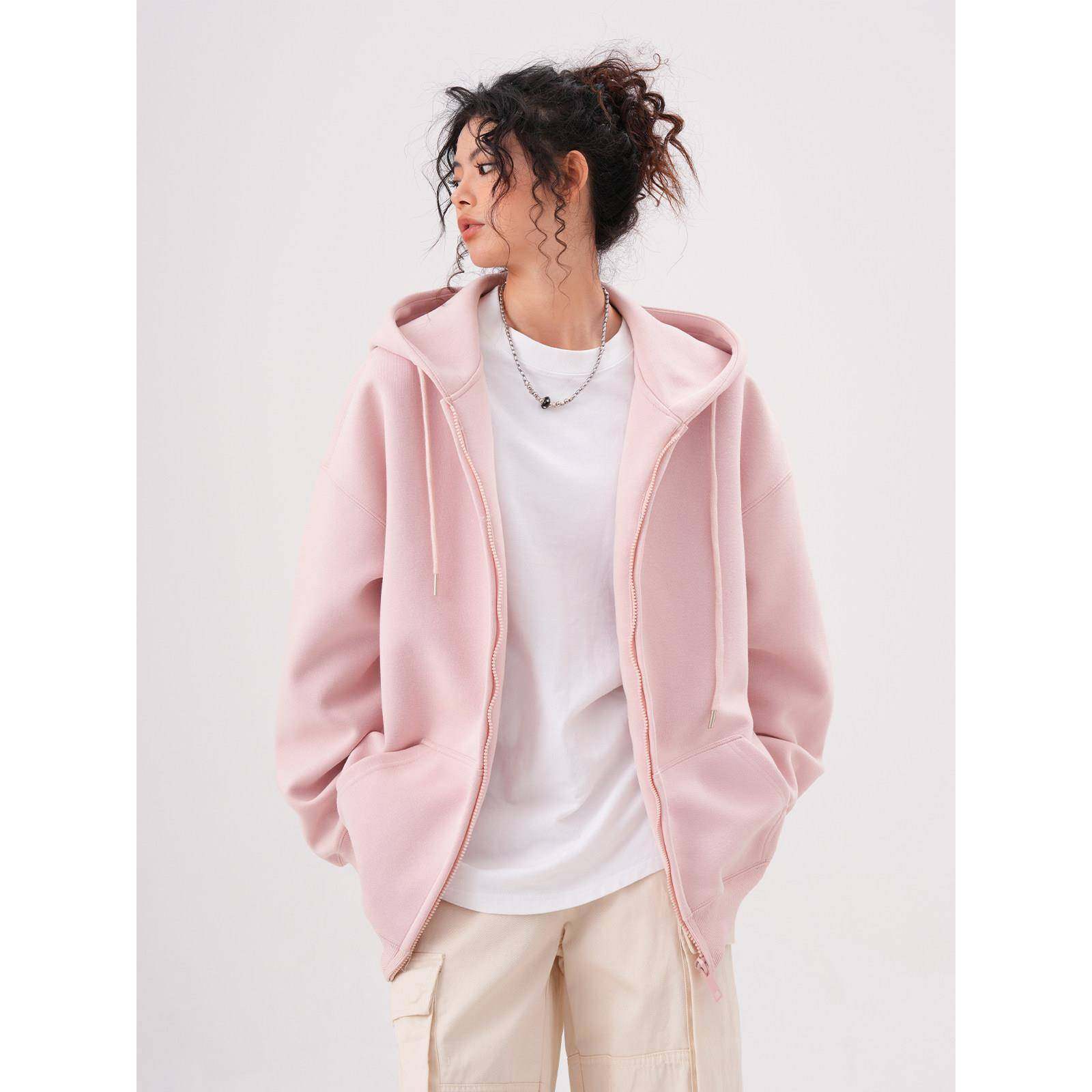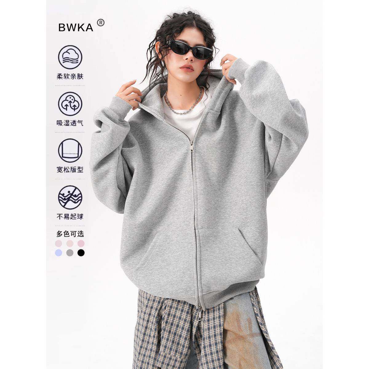 BWK衣A情42G重磅卫外套女男秋季宽松纯色0百搭帽衫美式休闲侣W-W0