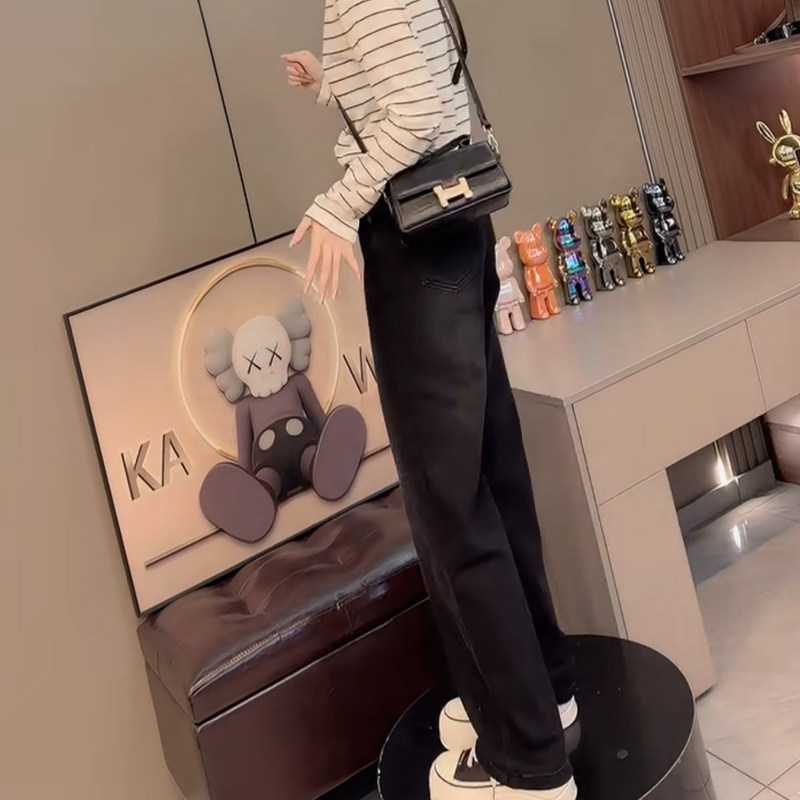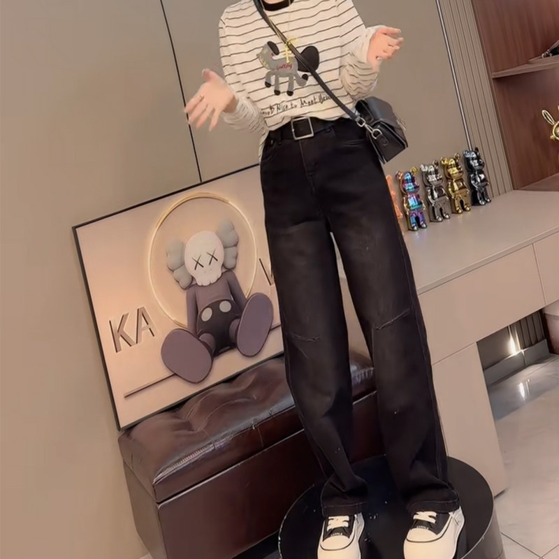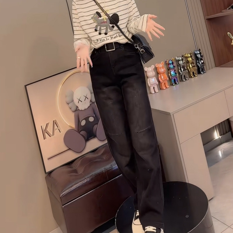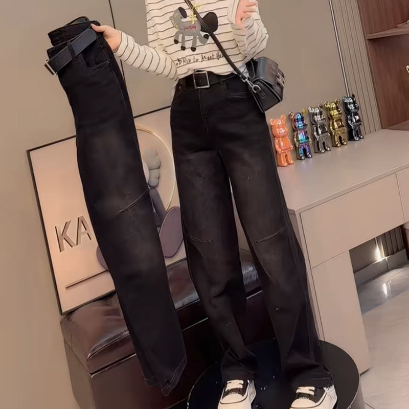 欧货美式高街黑色牛仔裤2026春新款做旧净版简约弹力显瘦直筒长裤