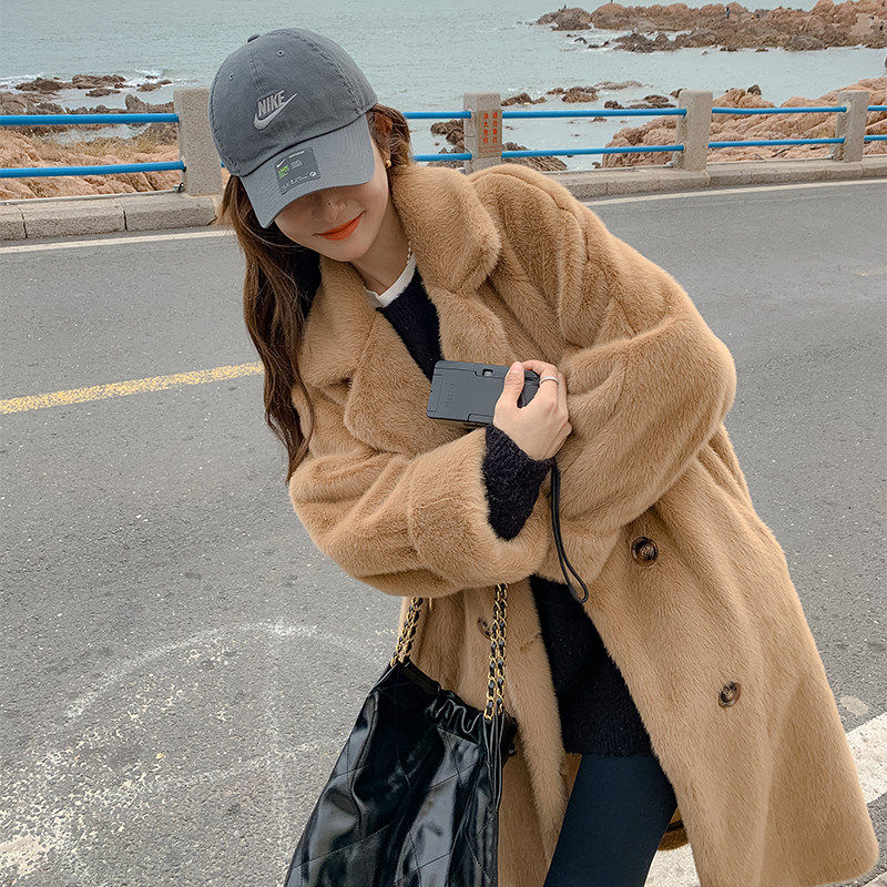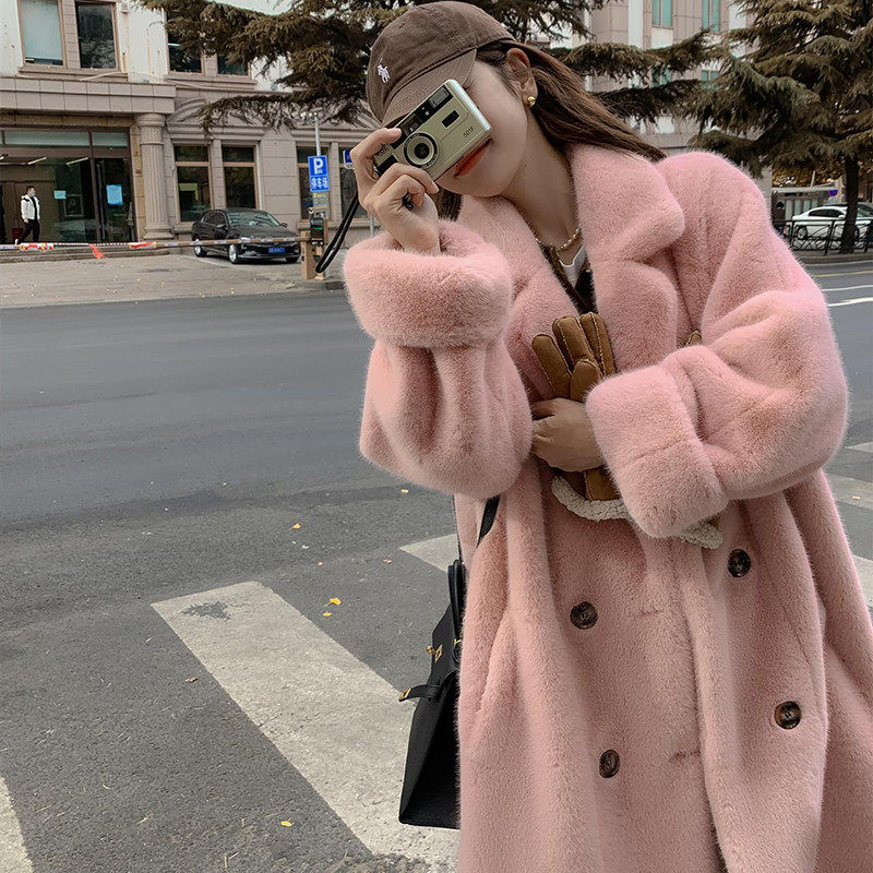 2025冬季加厚长款西服领仿水貂绒皮毛一体毛毛环保皮草女外套大衣