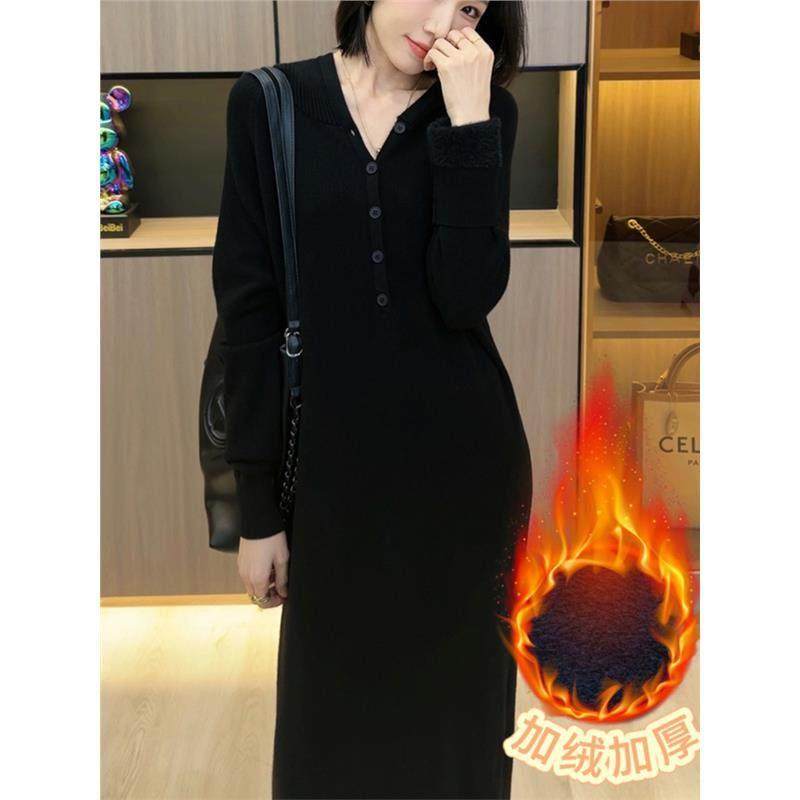 首页> 女装> 欧洲站连帽加厚打底针织连衣裙女2025年新款秋宽松洋气内搭毛衣裙