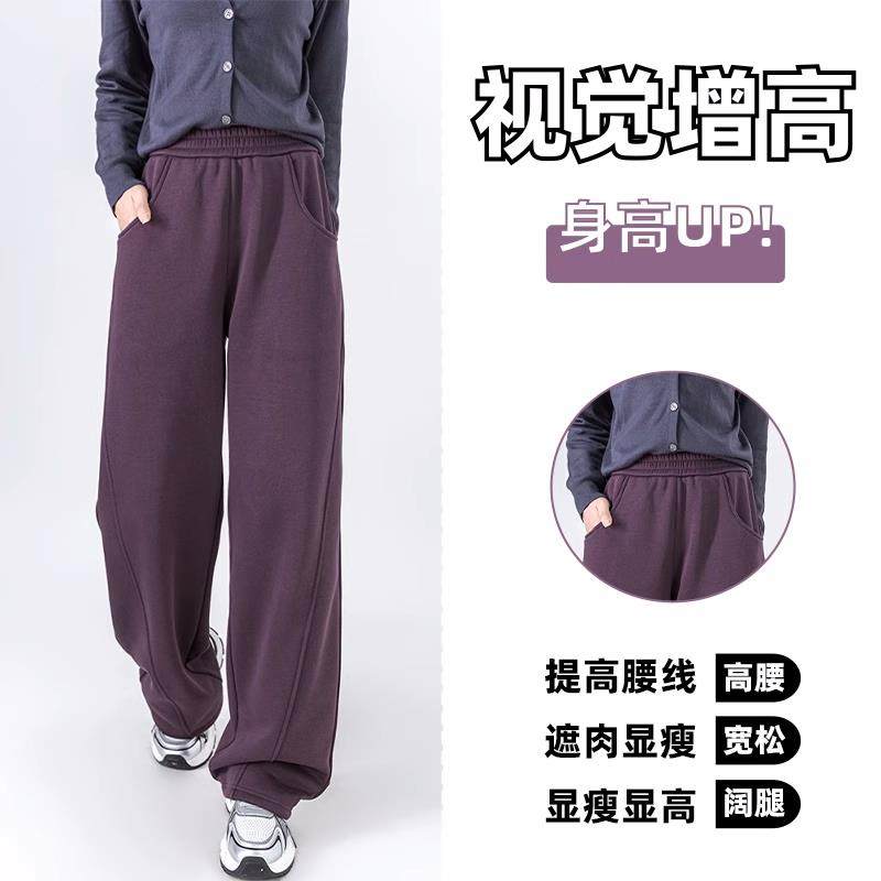 首页> 女装> 乌梅紫色窄版香蕉裤女秋冬季2025新款加绒加厚弯刀镰刀休闲卫裤子