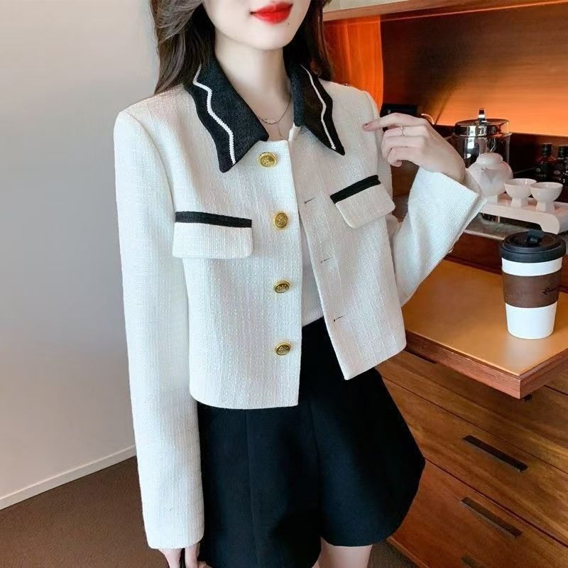 法式名媛小香风外套女春秋高级感新款小个子短款赫本西装上衣