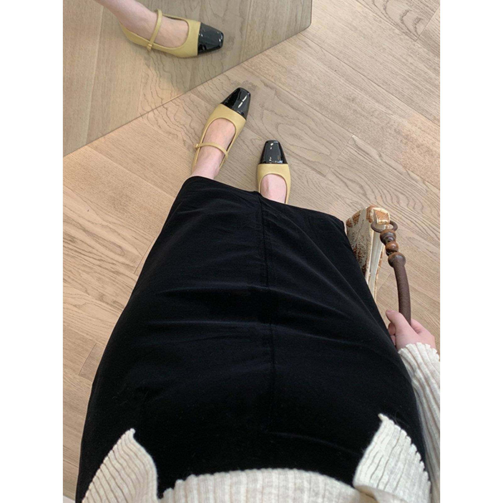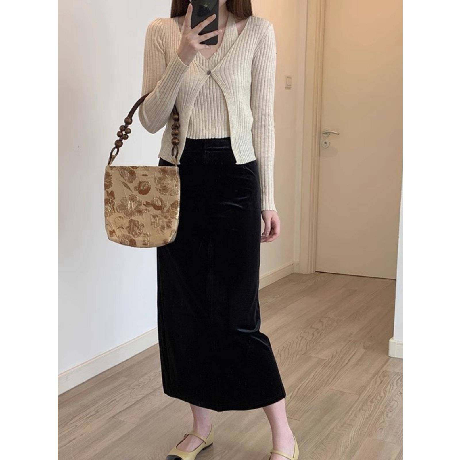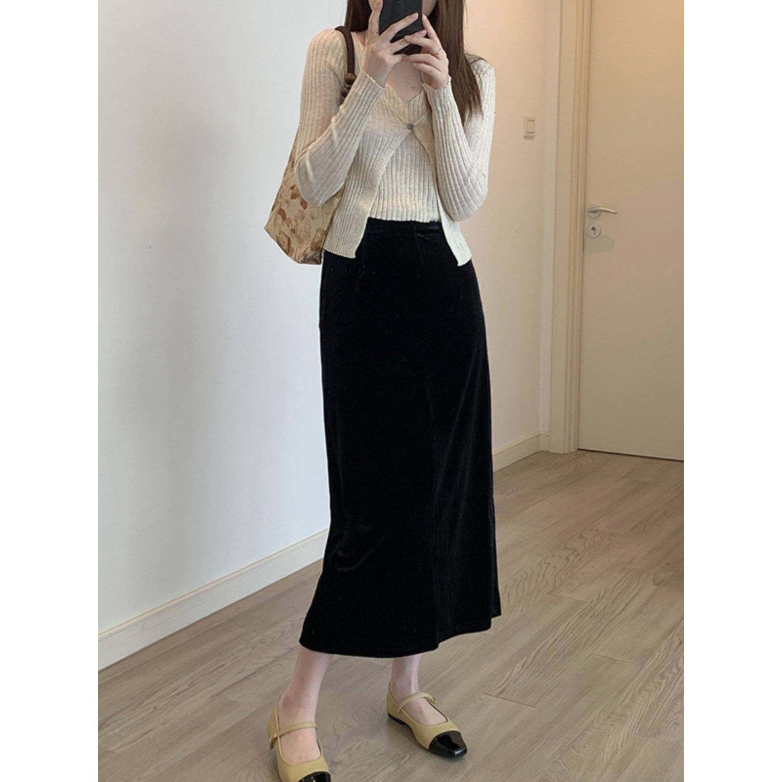 韩国丝绒直筒裙半身裙女秋冬新款金丝绒长裙半裙气质修身包臀裙子
