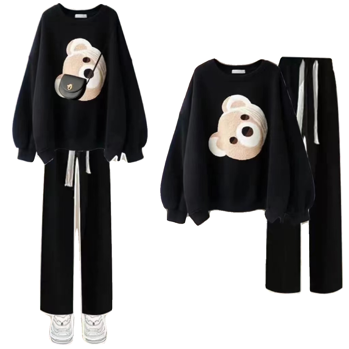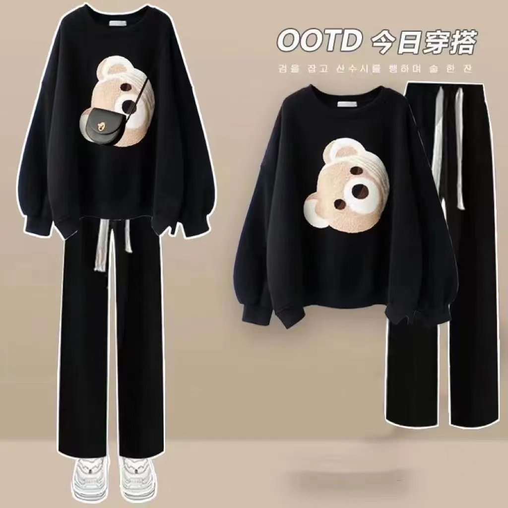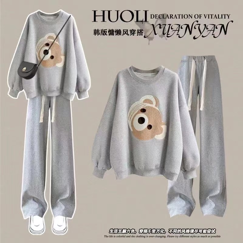 学院风休闲卫衣秋冬加绒套装女2024新款运动奶系小个子穿搭一整套