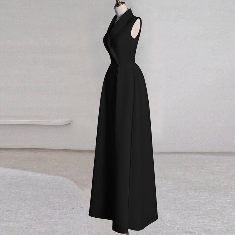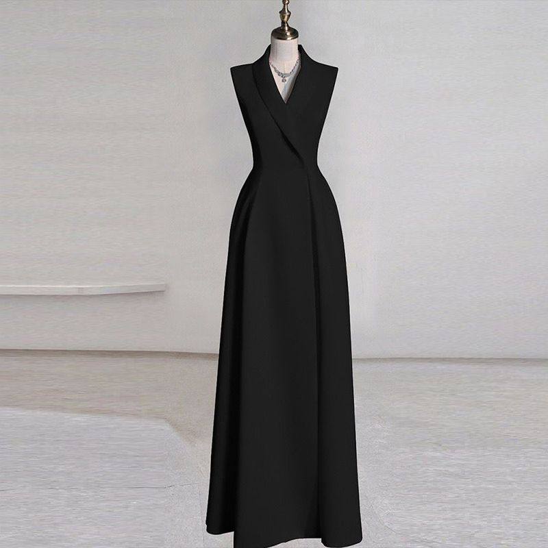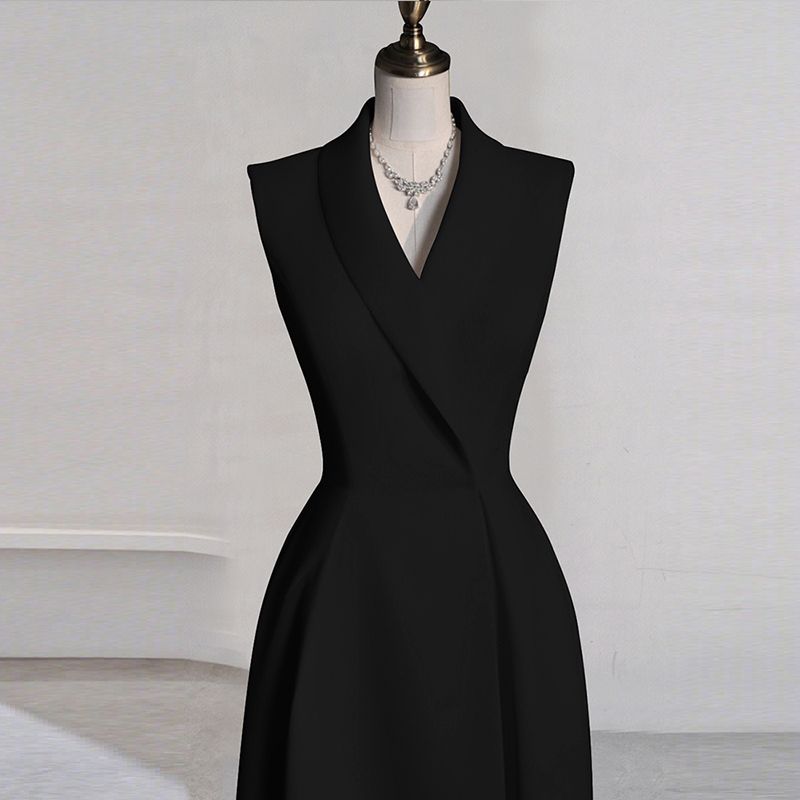 黑色晚礼服高端轻奢小众平时可穿高端西装领裙子超仙爆款外穿紧身