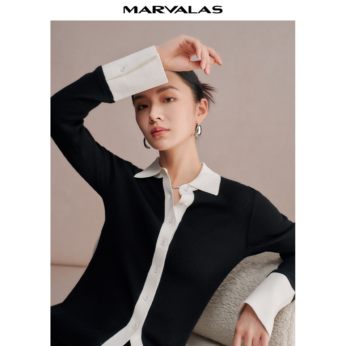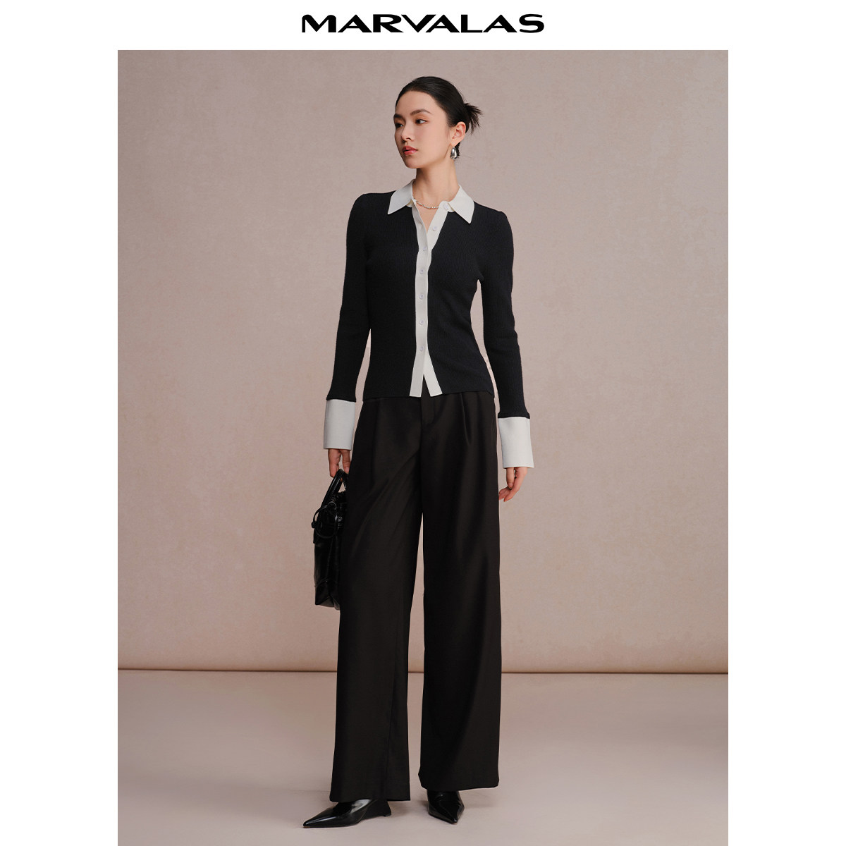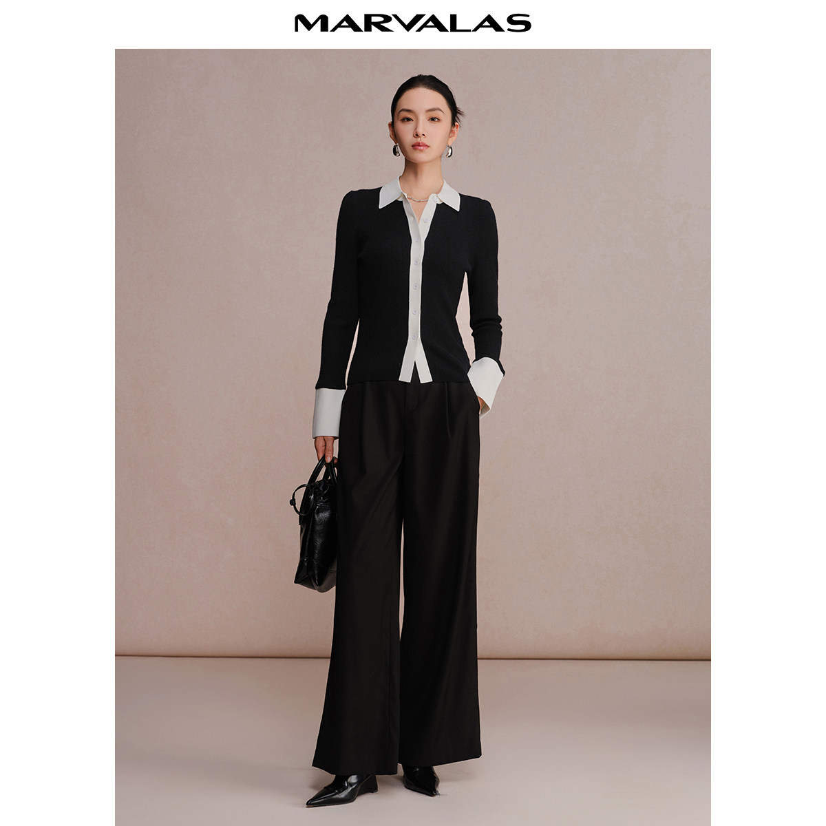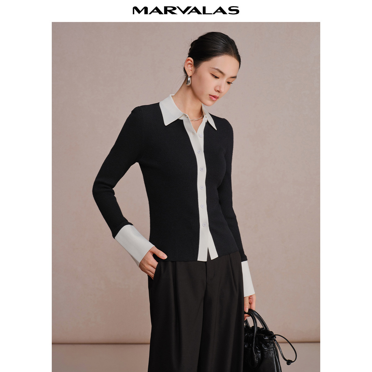 【粉丝专属】曼德诗短款撞色开衫2024冬季新品修身绵羊毛混纺针织