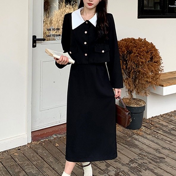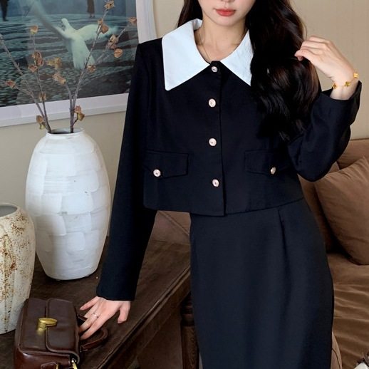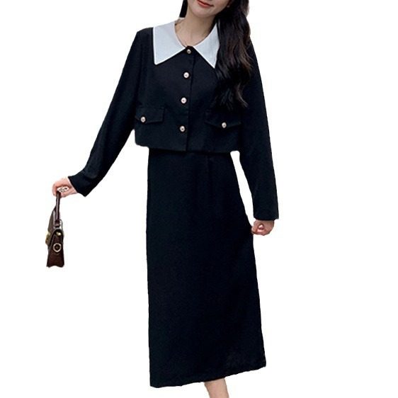 法式赫本风女装2024秋冬新款小香风上衣外套配半身裙套装