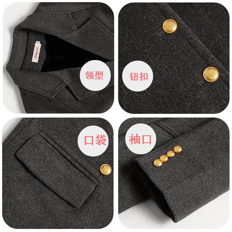 灰色呢子大衣女毛呢外套秋冬高级感小个子韩系加绒加厚大风衣外套