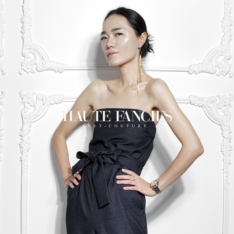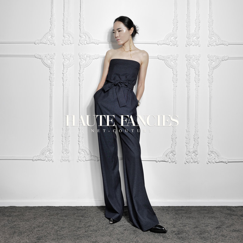 纸片肩 HAUTE FANCIES后构想|宝蓝色软牛仔抹胸连体裤25秋季新品