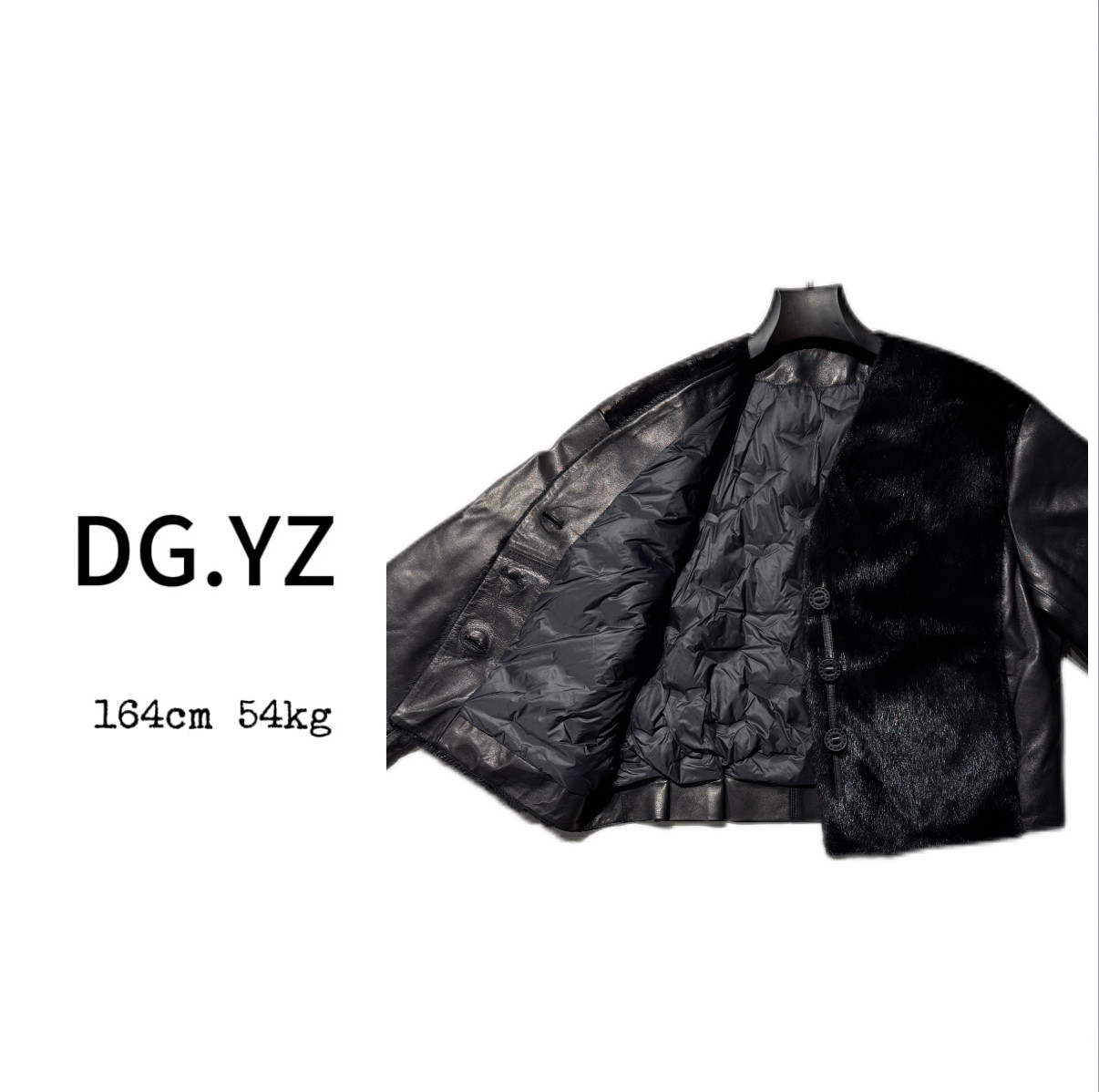 【樱子家】3223F单排扣V领拼接水貂鹅绒真皮外套