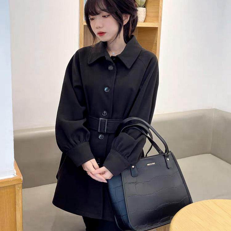 小个子黑色毛呢大衣女短款秋冬收腰显瘦赫本风高级感呢子外套女