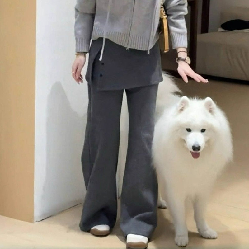 首页> 女装> 小个子150灰色两件套微喇裤女冬季加绒加厚145xs小码休闲喇叭长裤