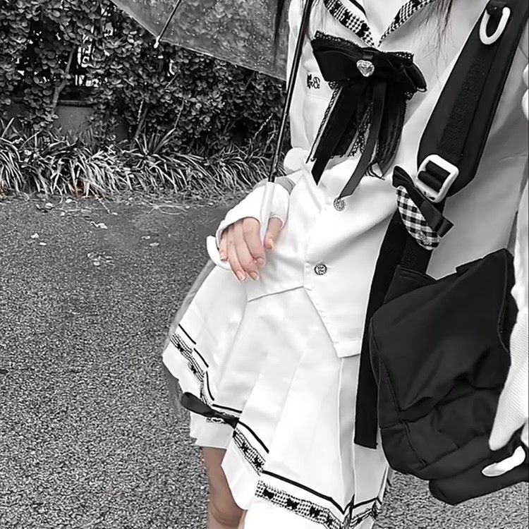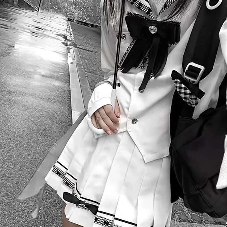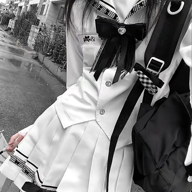 首页> 女装> 黑白序章 日系古早少女感学院风海军领上衣+百褶半身裙两件套秋季