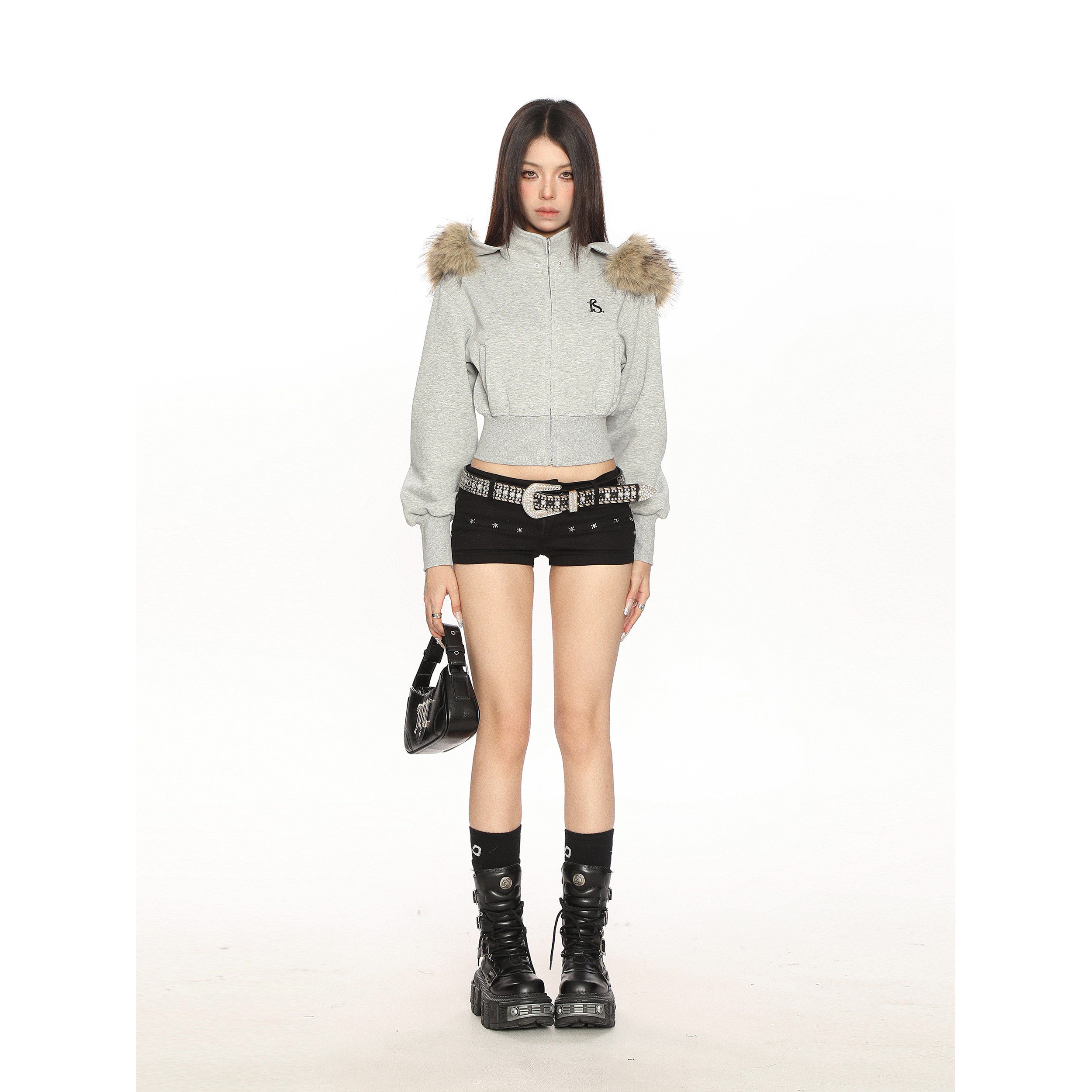 BIGGOLD美式连帽大毛领可拆卸短款卫衣女春秋加绒辣妹开衫外套潮