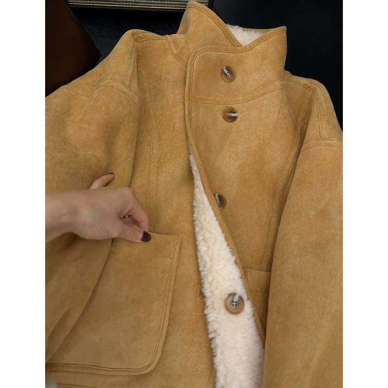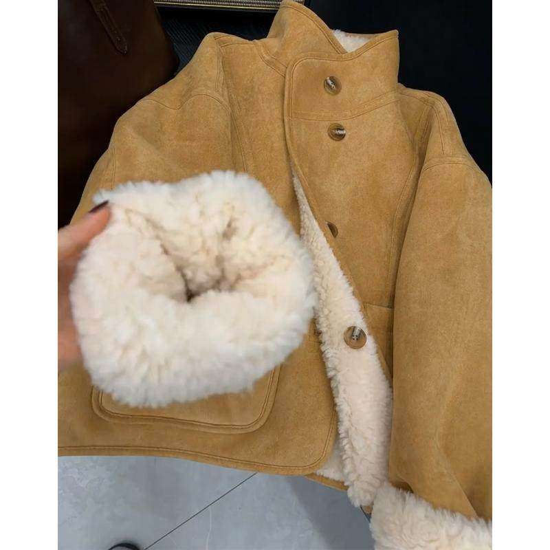 两面穿羊羔毛皮毛一体短外套女2025新款秋冬季羊羔绒立领夹克保暖