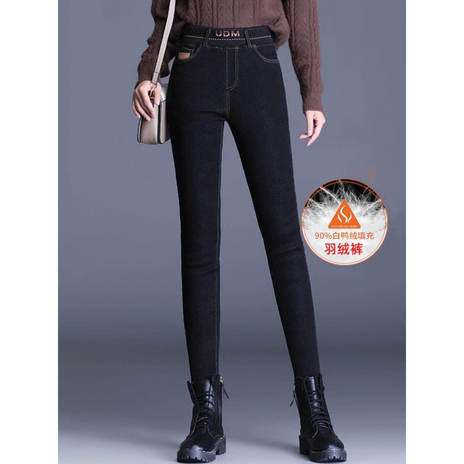 牛仔羽绒裤2025女冬新款加厚保暖白鸭绒高腰显瘦踩脚外穿小脚裤