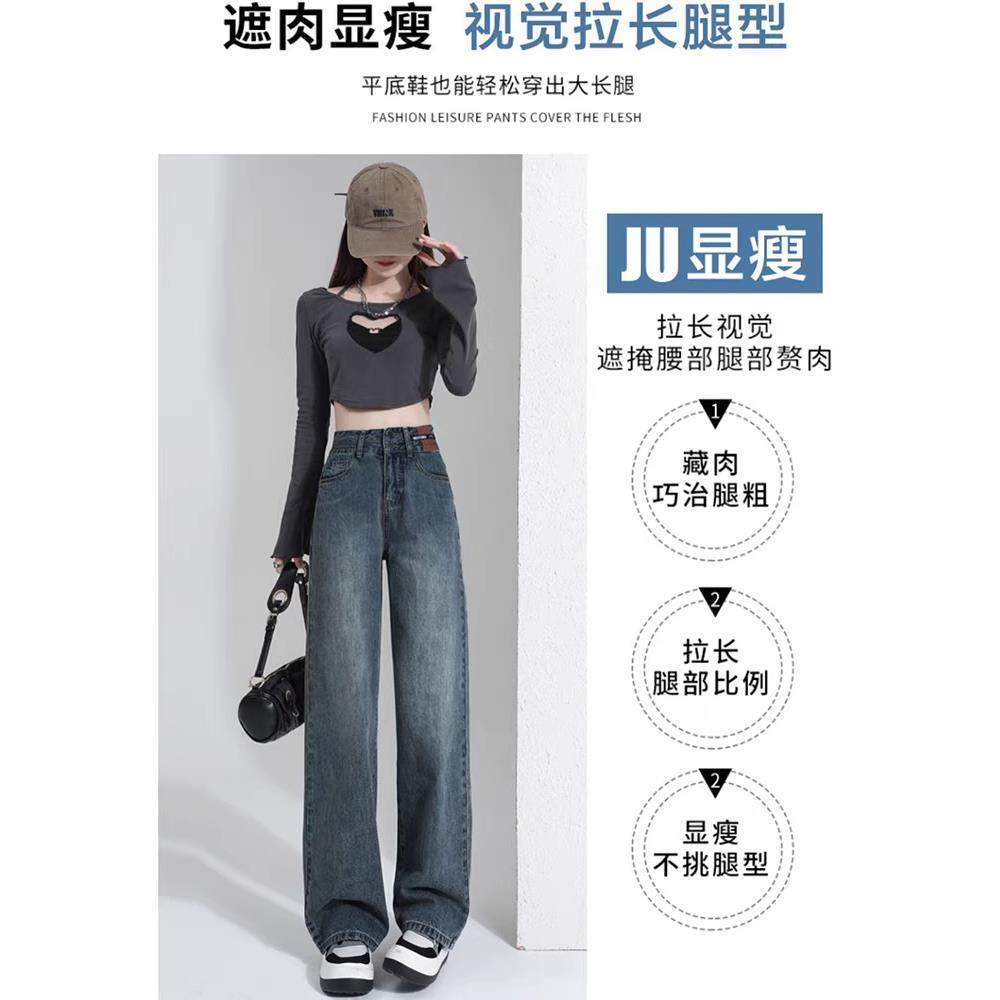 首页> 女装> 覆古阔腿牛仔裤女春秋2025年新款高腰宽松秋冬加绒裤子直筒拖地裤