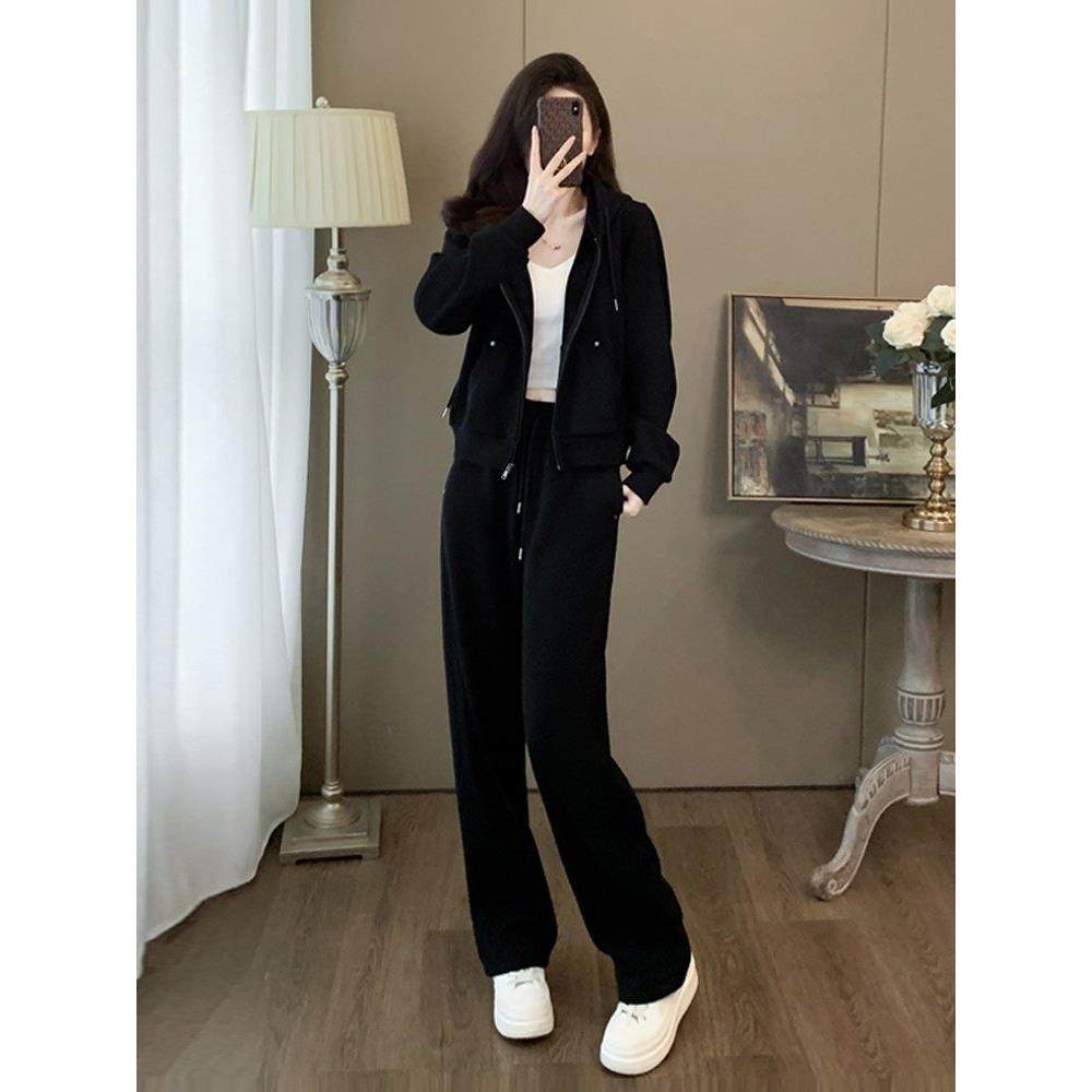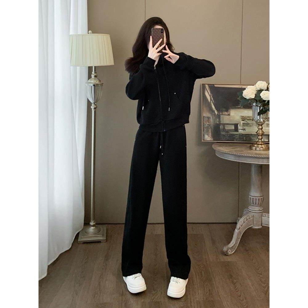 正品2025秋冬运动休闲套装女宽松显瘦遮肉时尚洋气加绒卫衣两件套