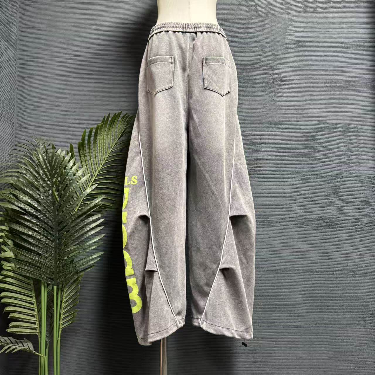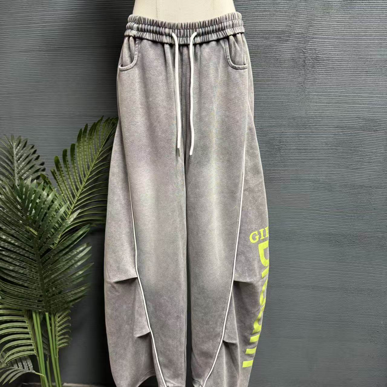 镜服饰2026秋季复古风高腰抽绳阔腿裤女宽松显瘦印花长裤20113