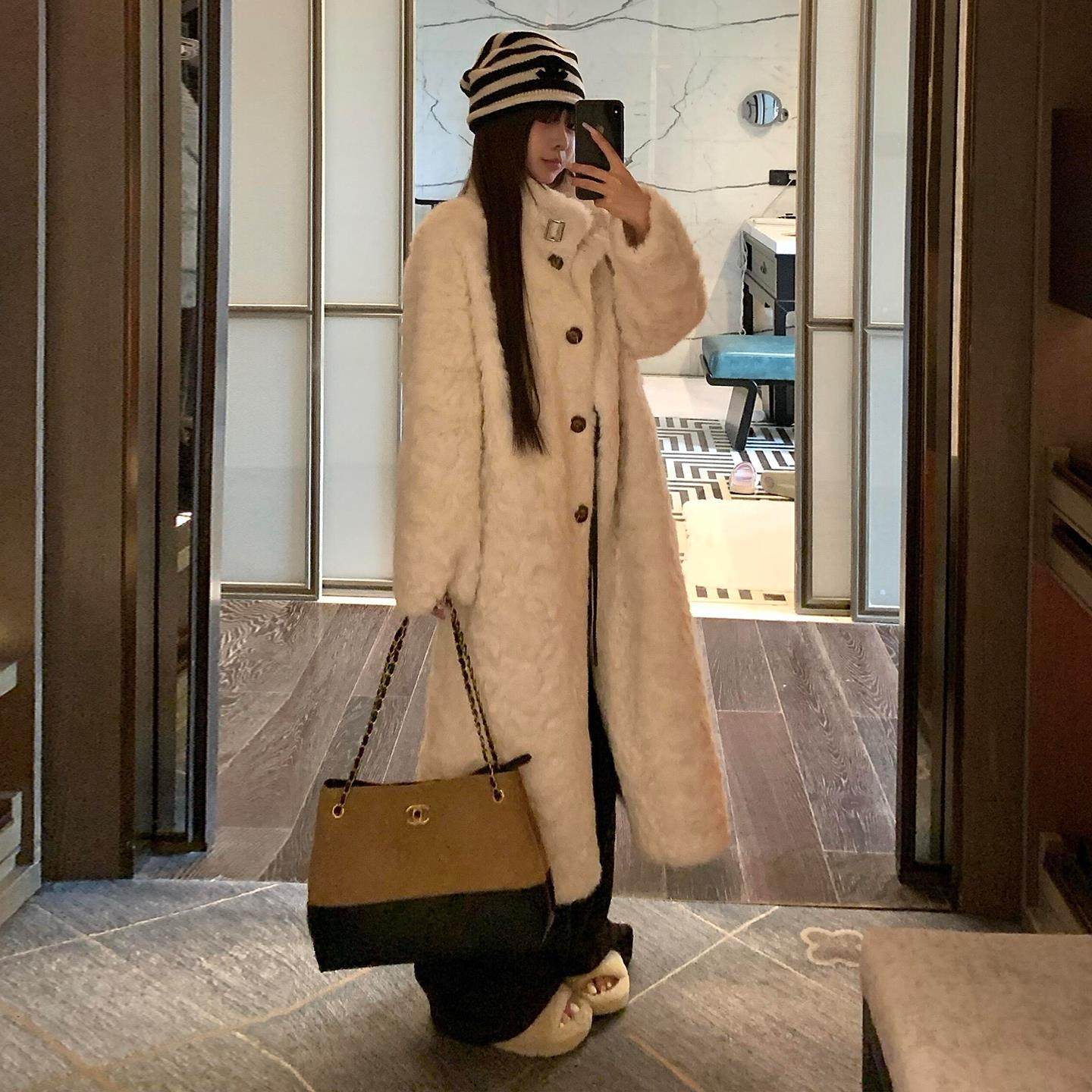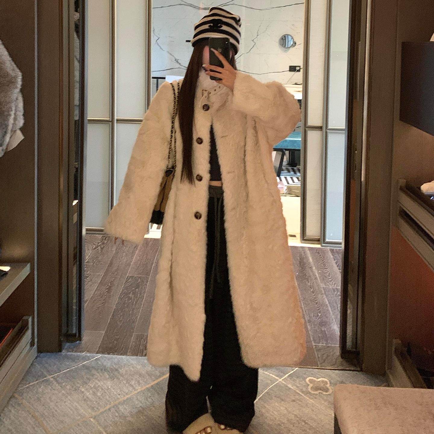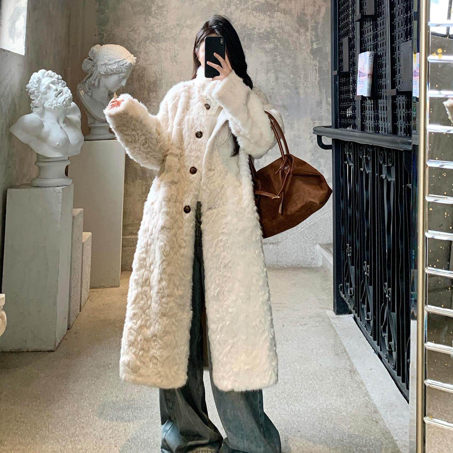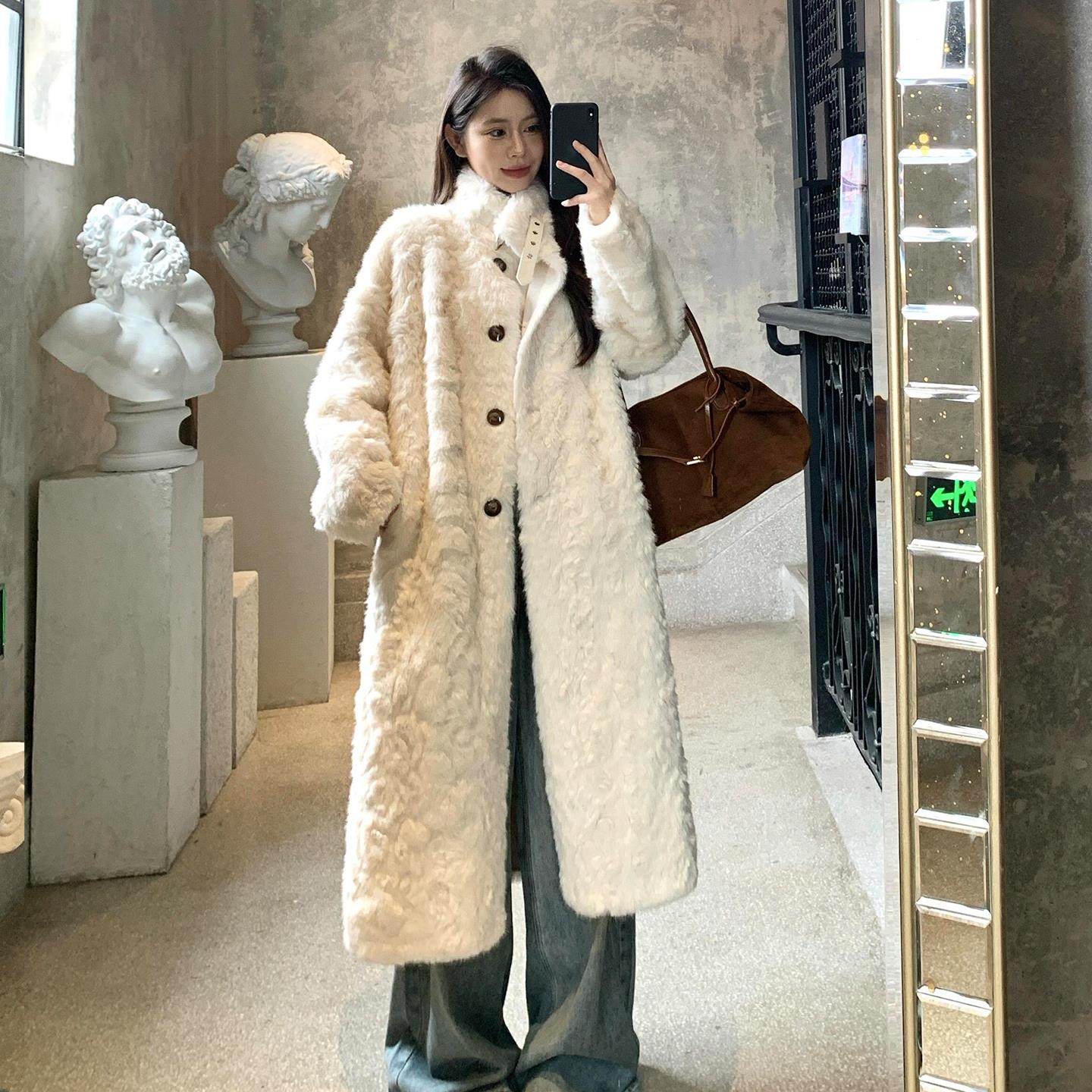 冬季长款立领小湖羊毛毛外套女宽松遮肉显瘦皮毛一体环保皮草大衣