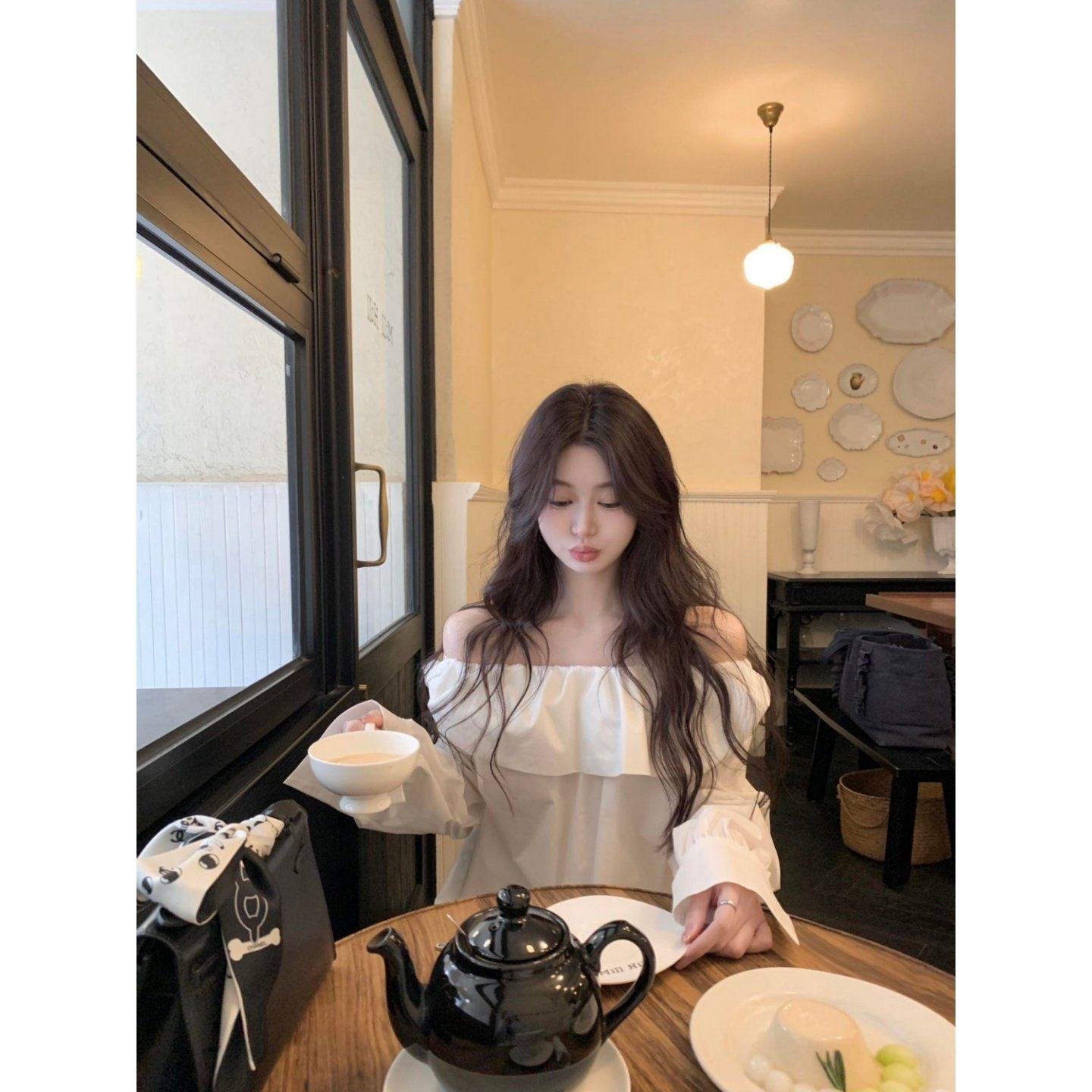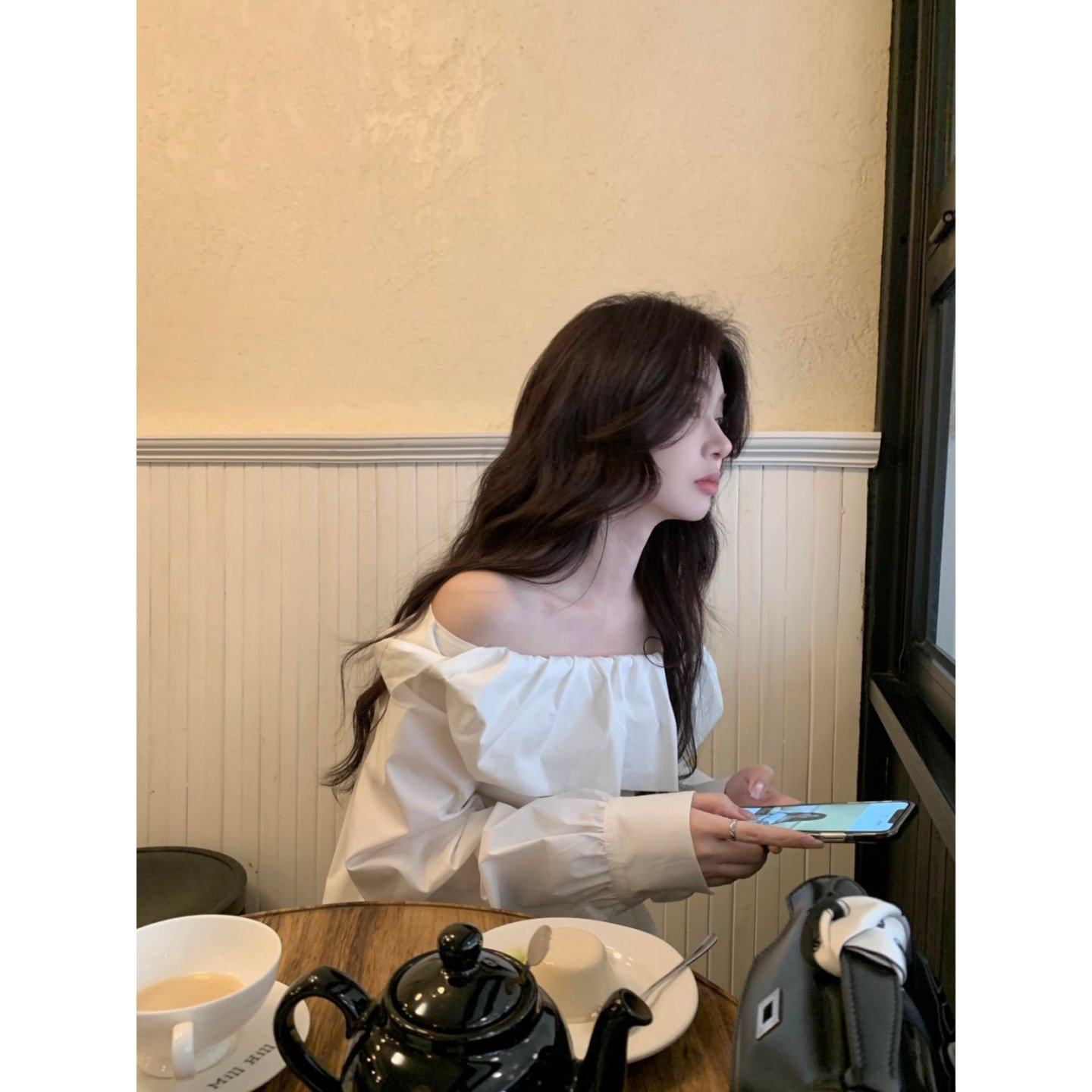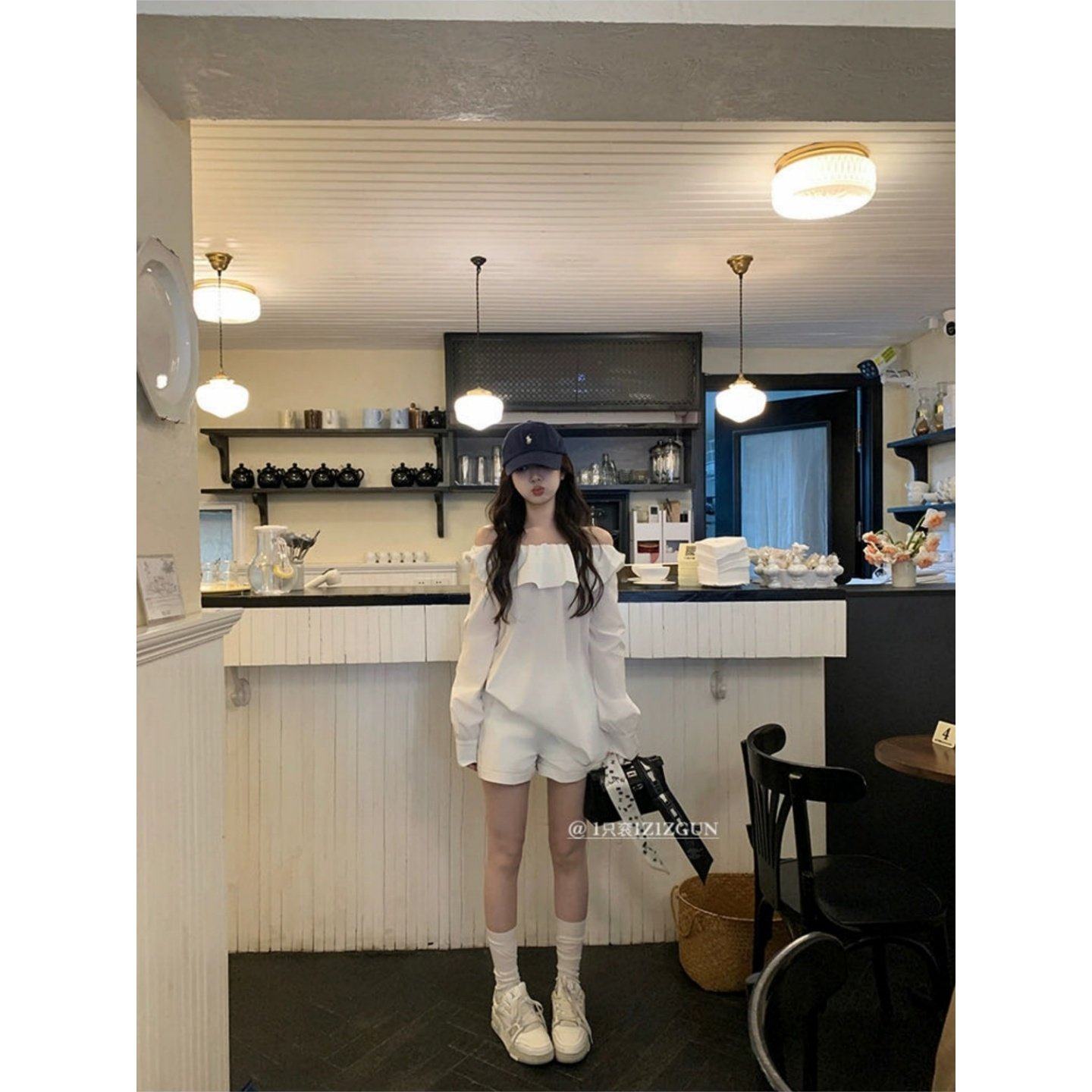 2026巨好看搭配一整套荷叶边一字肩长袖衬衫显瘦百搭高腰休闲短裤