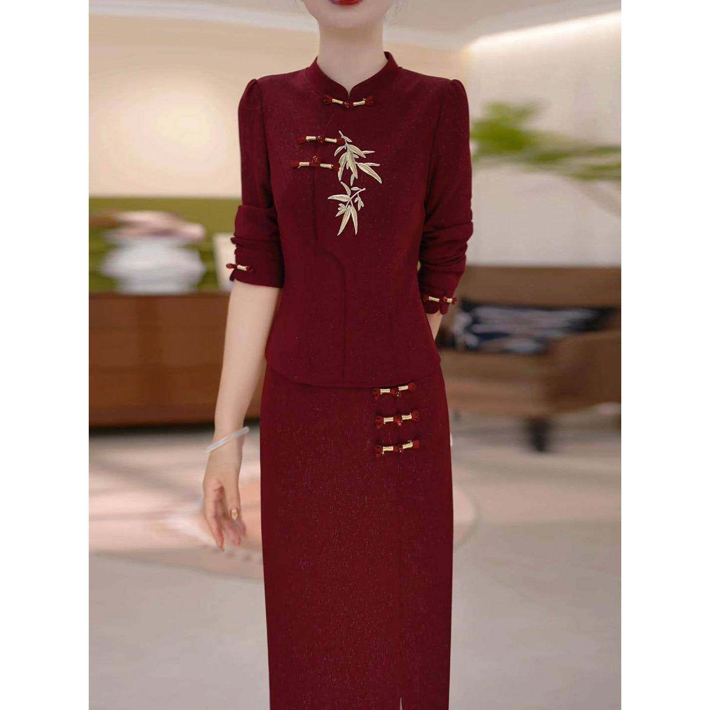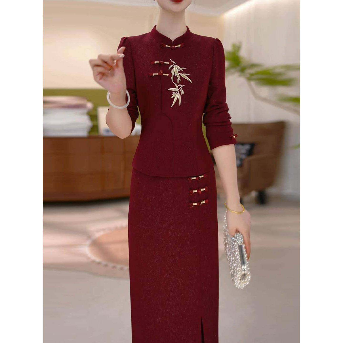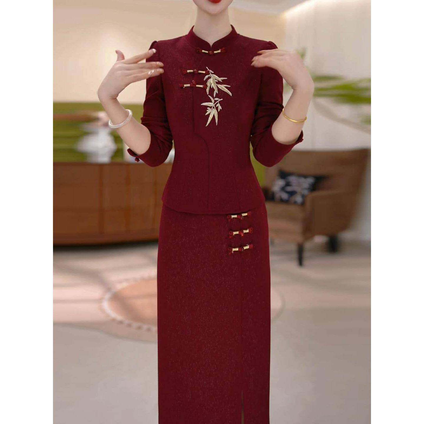 首页> 女装> Ocnltiy新中式国风改良旗袍连衣裙轻奢时尚喜婆婆婚宴装妈妈礼服