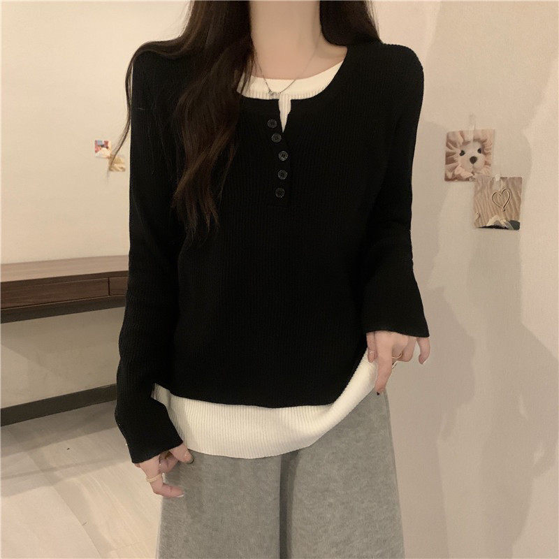 软糯遮肚子假两件毛衣针织衫女秋冬新款胖妹妹宽松显瘦长袖内搭衣