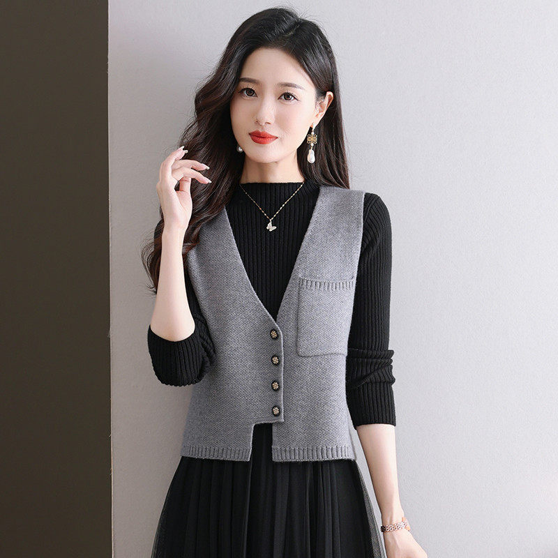新中式马夹针织毛线马甲女安可拉红坎肩叠穿上衣短款毛衣春季外搭