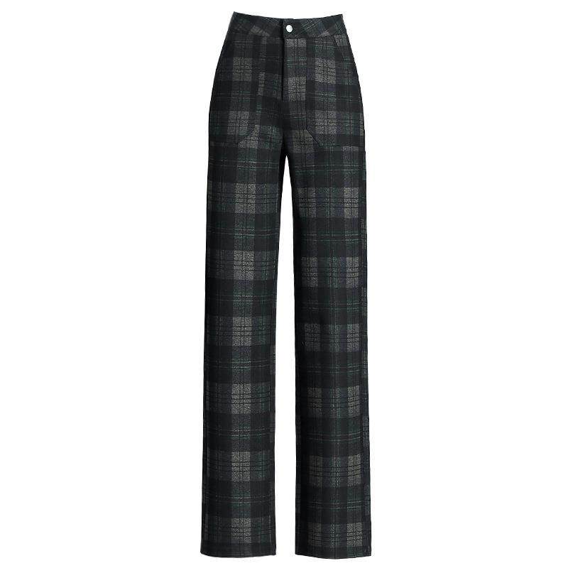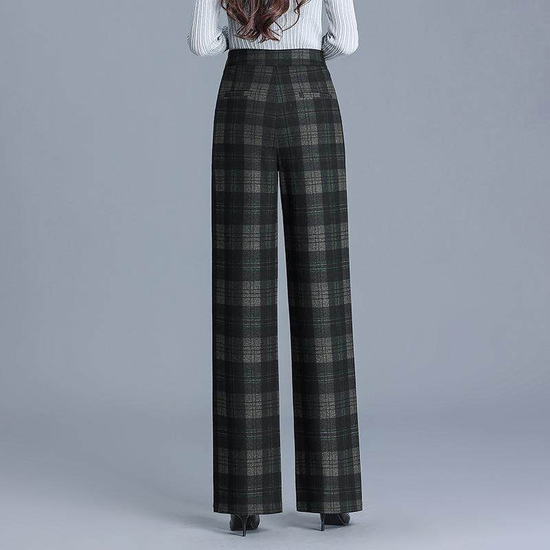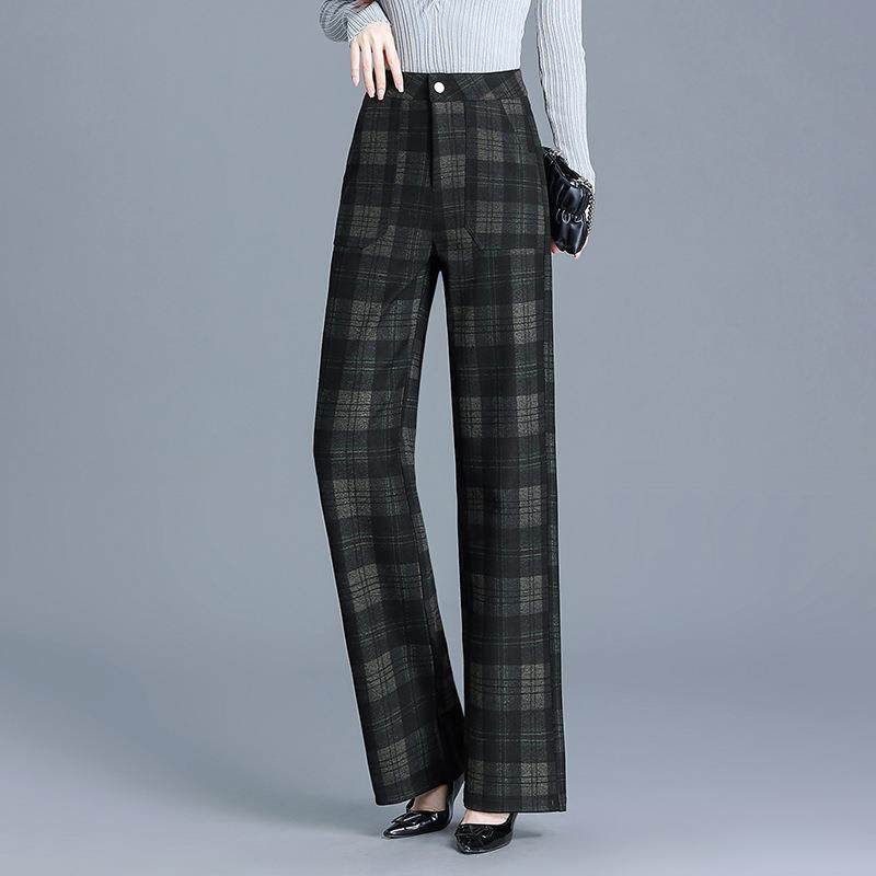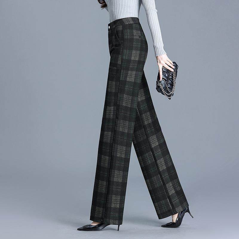 百搭毛呢格子阔腿裤女2024秋冬新款高腰垂坠感宽松直筒裤休闲裤子