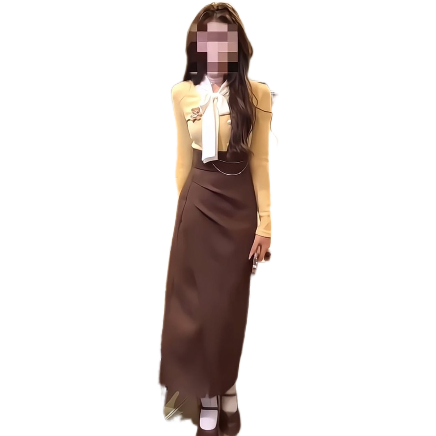 焦糖奶霜 气质感可露丽穿搭假两件针织上衣+高腰半身裙两件套冬季