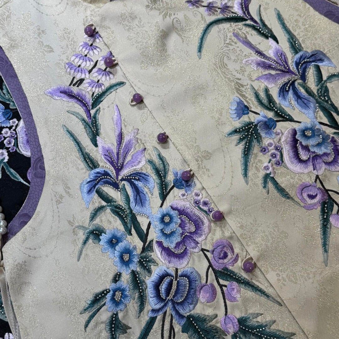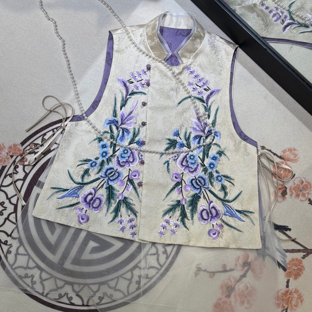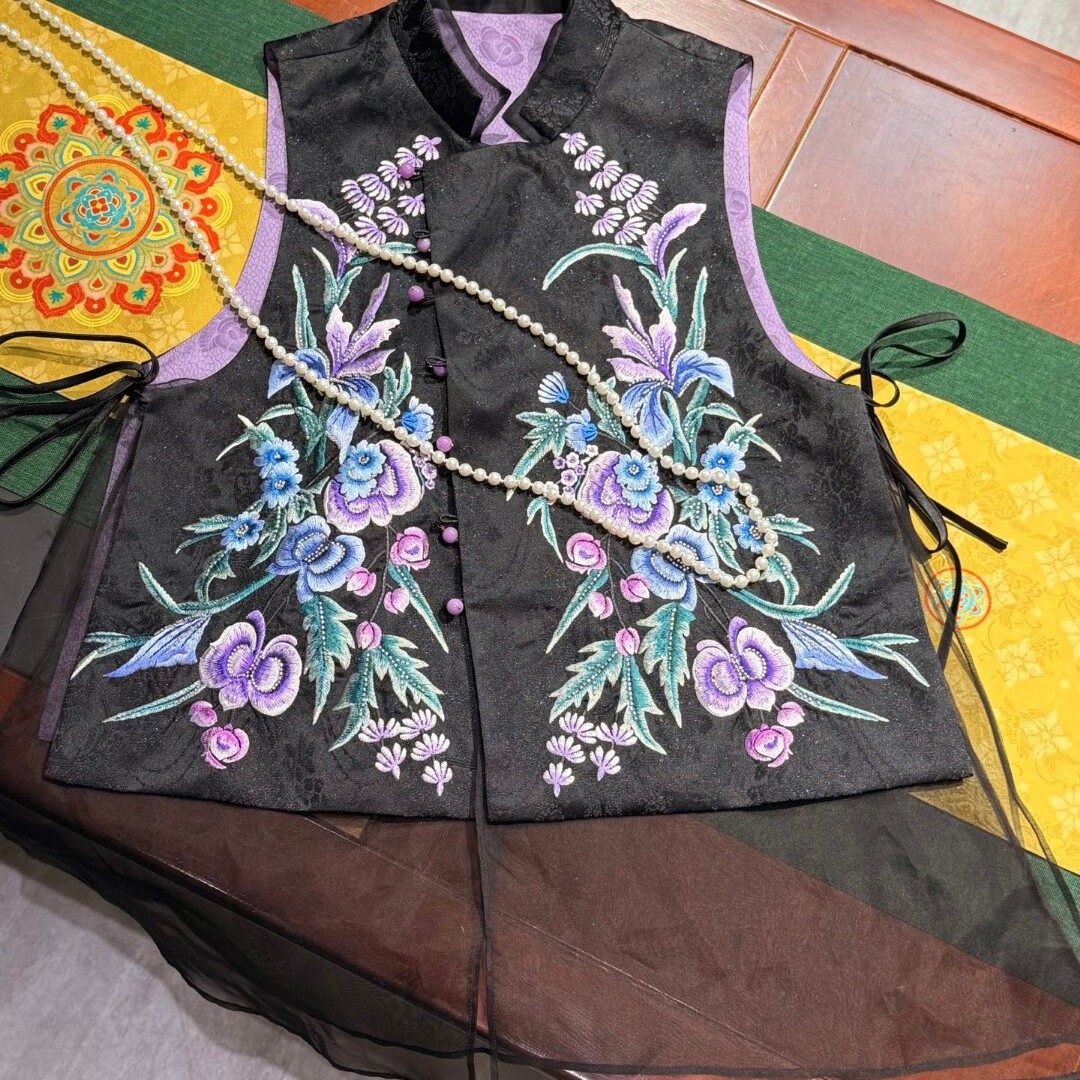 26年早春!重工刺绣拼接欧根纱立领中长款马甲