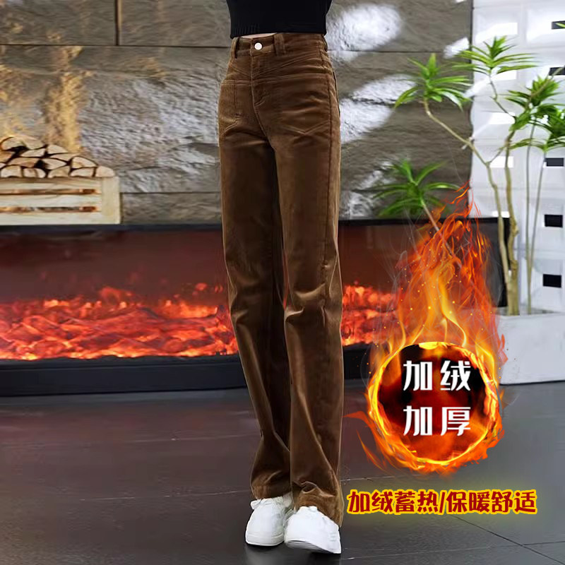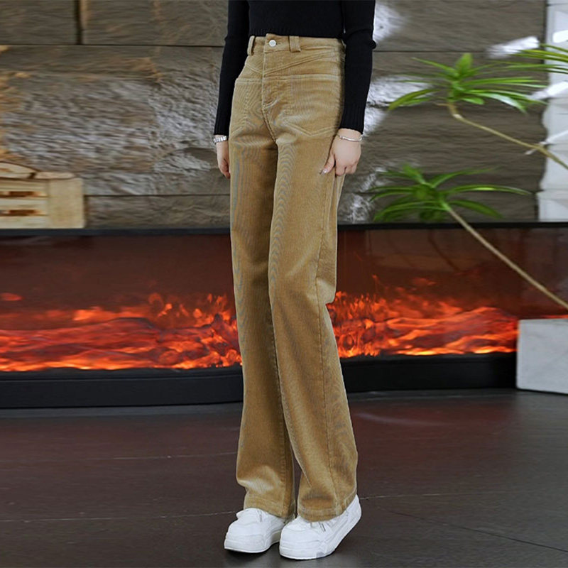 啄木鸟灯芯绒阔腿裤女秋冬季裤子高腰宽松加绒加厚条绒直筒裤女