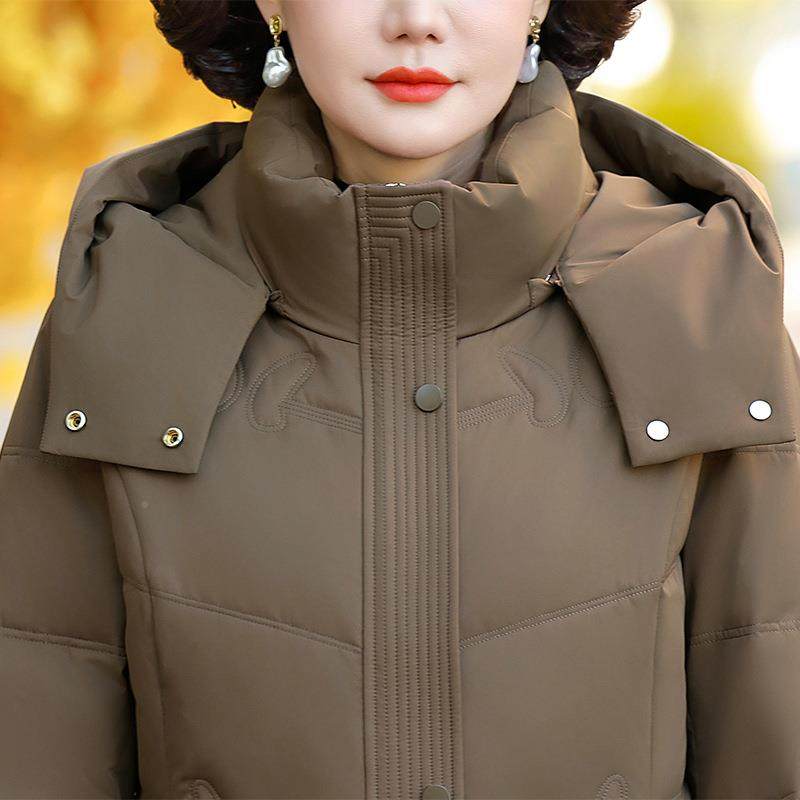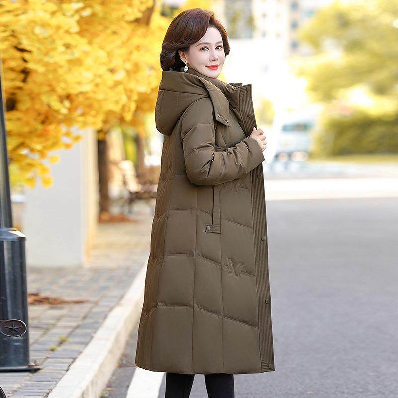 冬羽8068装新款宽松加厚时尚妈妈白鸭绒套老年长款中过外膝绒服女