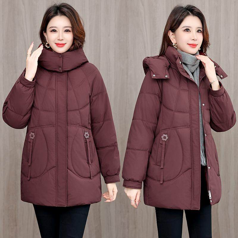 中年宽809松棉衣女款冬老新款韩服版妈妈中长棉女连帽外套女棉袄