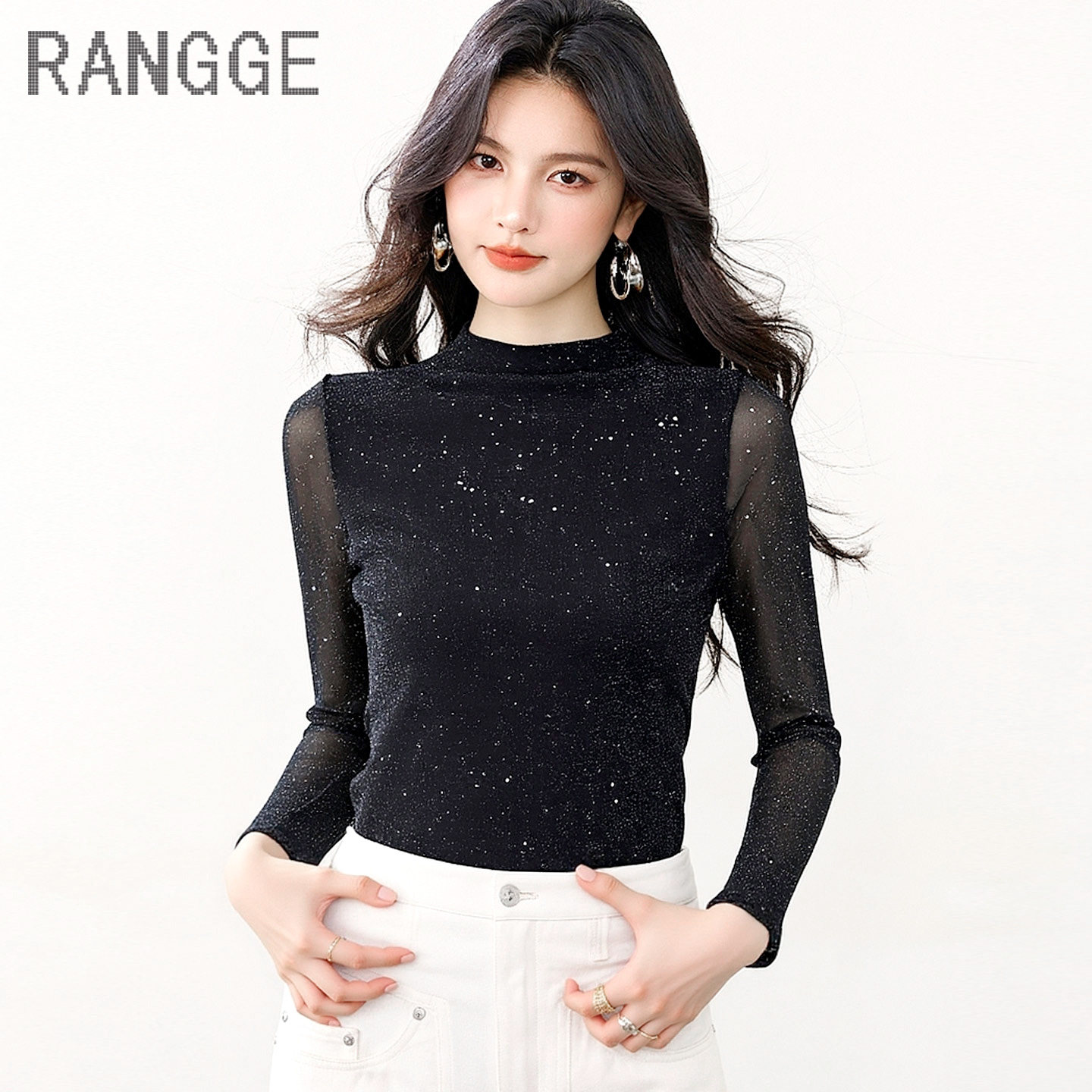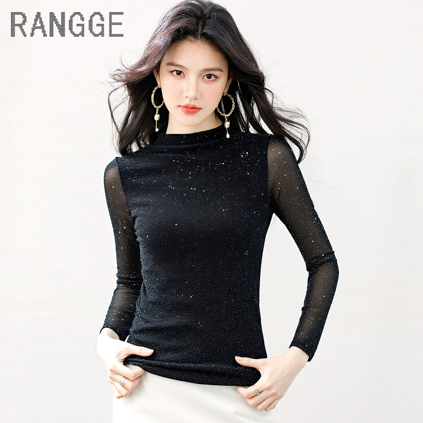 首页> 女装> 高级感亮片网纱长袖T恤女春秋半高领修身弹力打底衫薄款内搭上衣