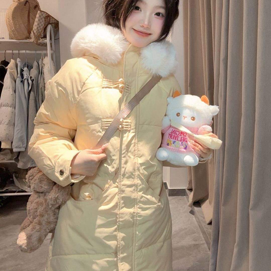 蓝色羽绒服中长款棉服女2025冬季新款小个子过膝加厚保暖棉袄外套