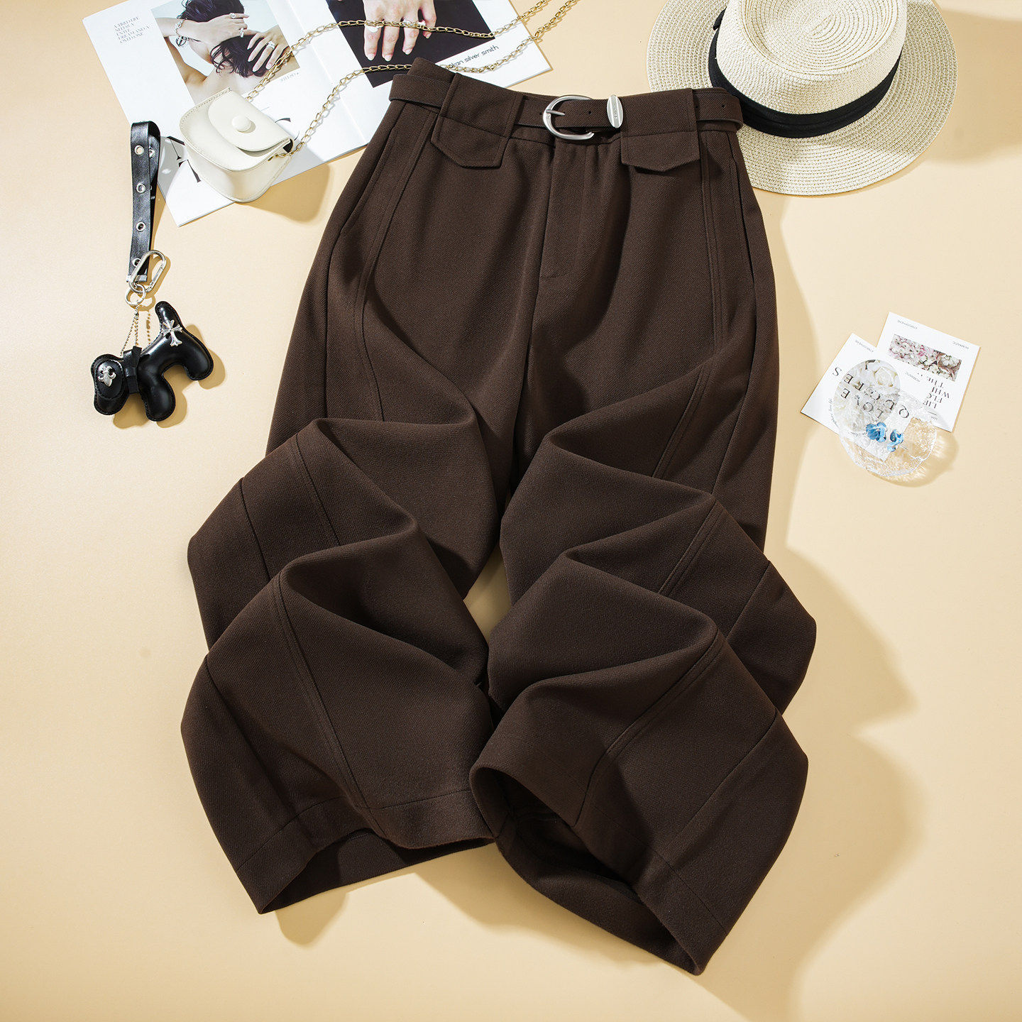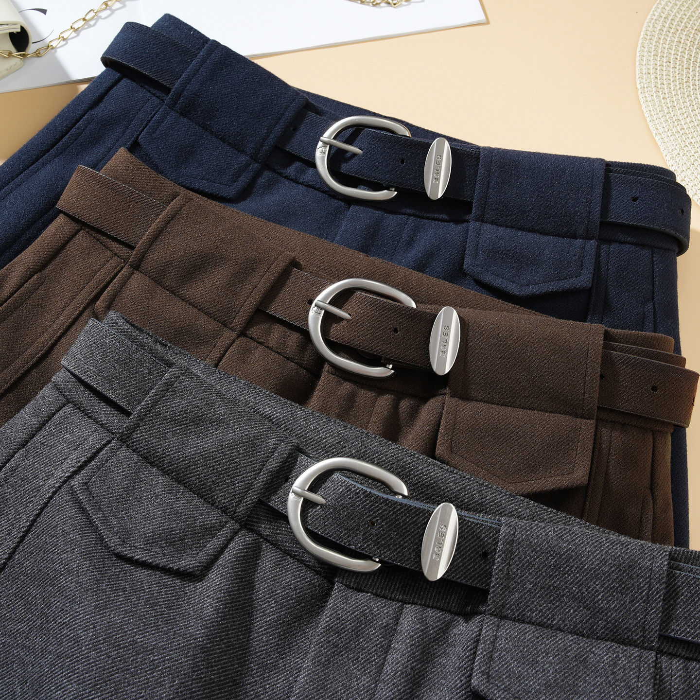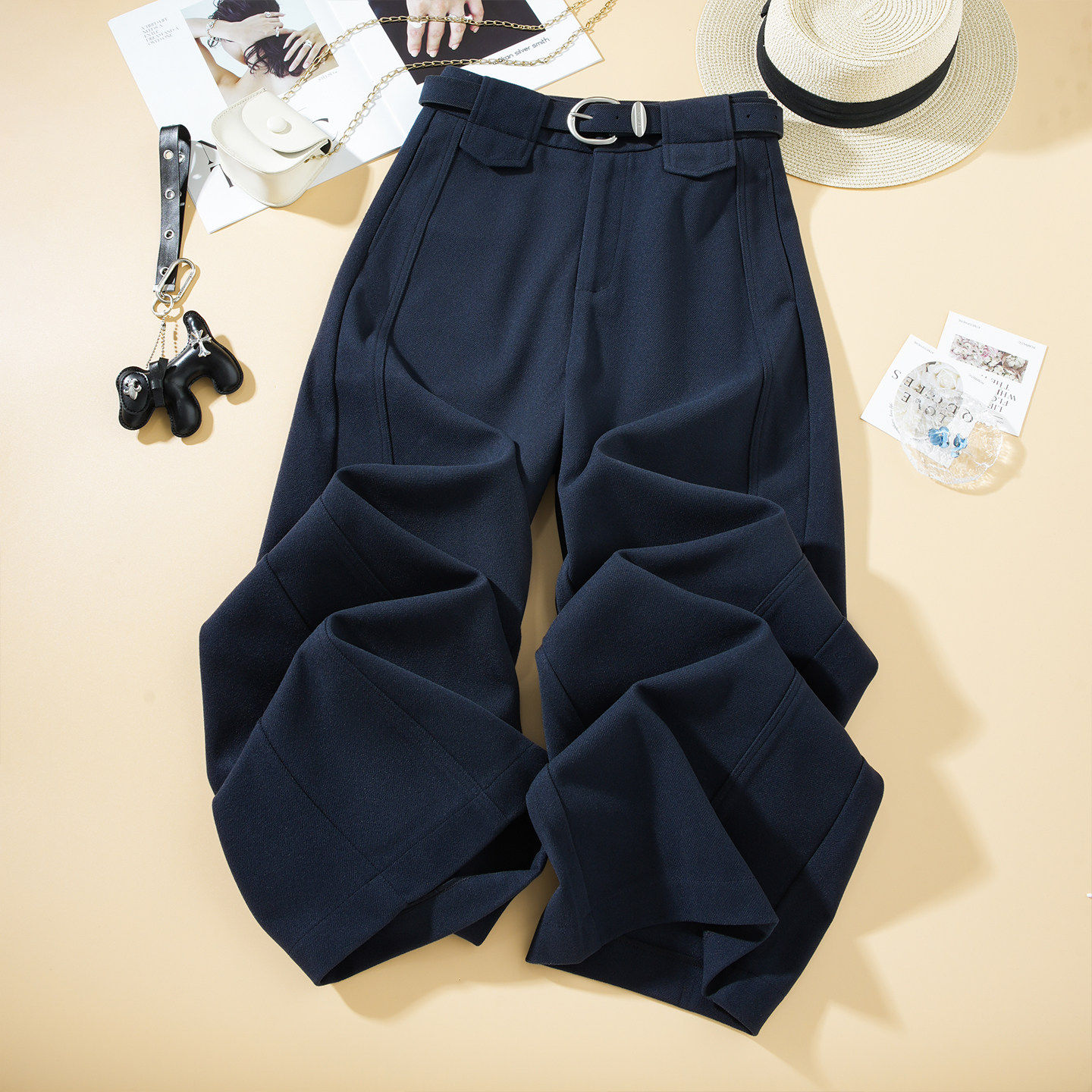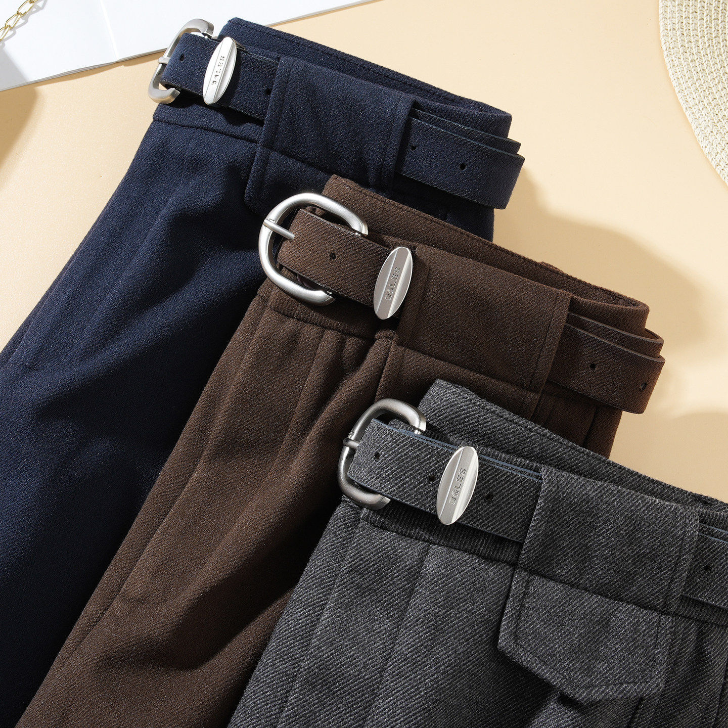 啄木鸟毛呢阔腿裤女2025秋冬新款高腰显瘦垂宽松休闲裤