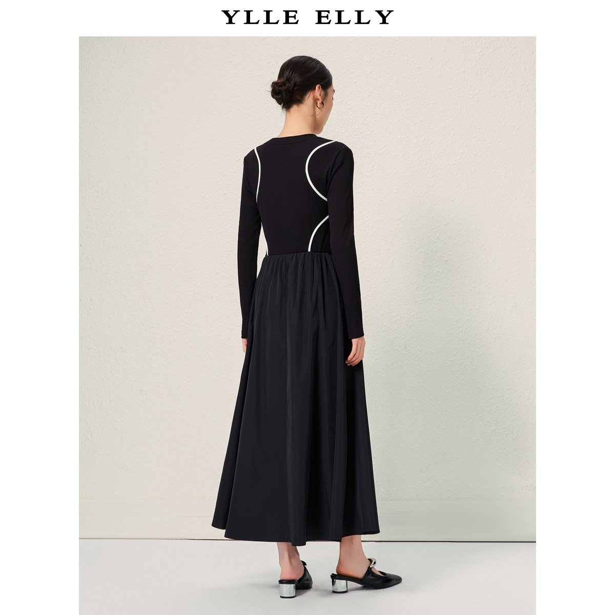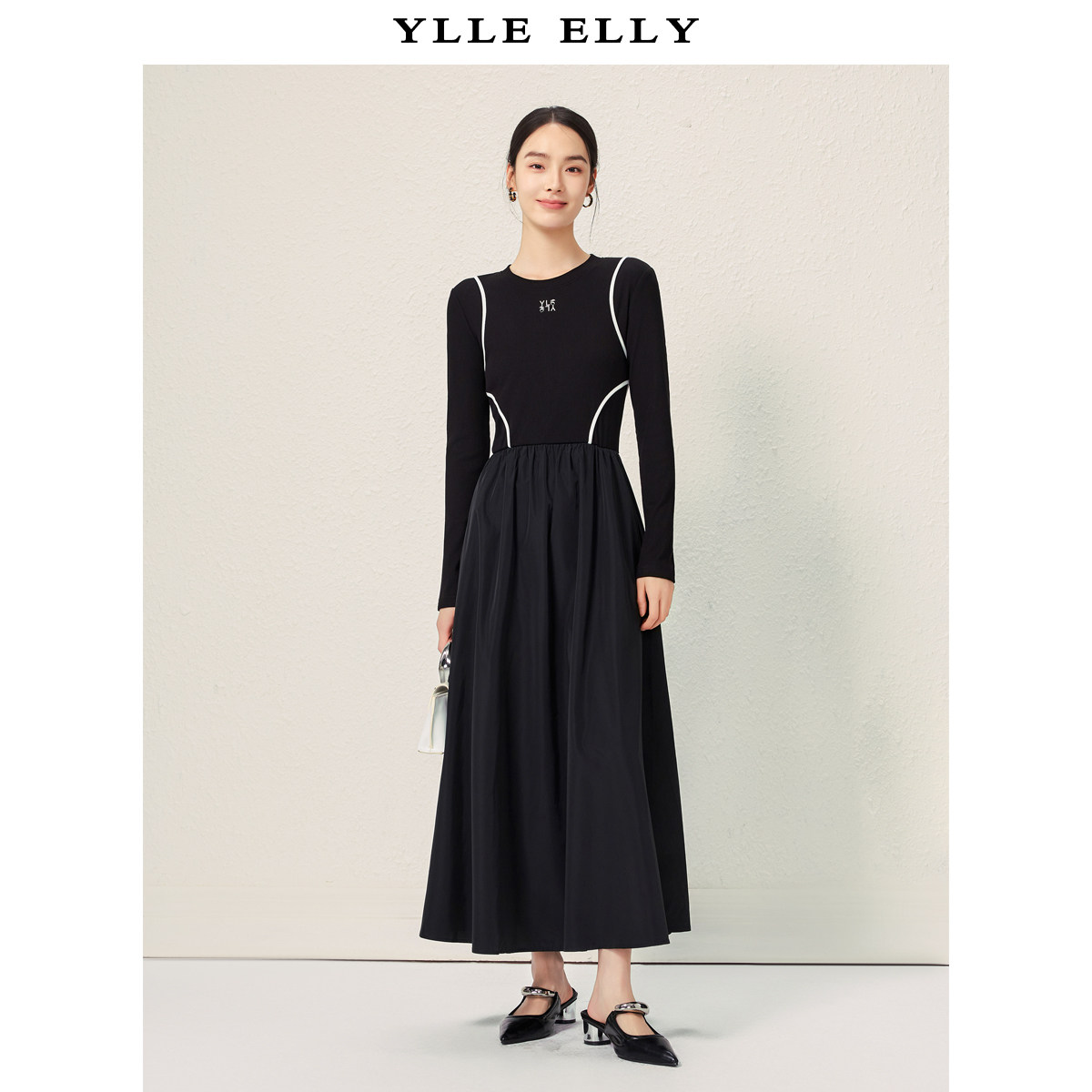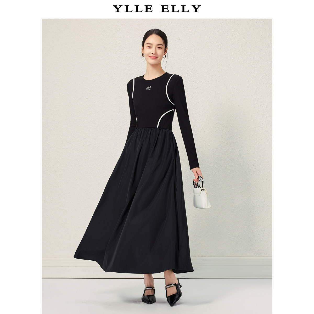 【粉丝专属】黑白撞色连衣裙2025秋季新款时尚修身百搭通勤小黑裙